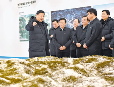 位于崇禮區(qū)的張家口賽區(qū)被譽(yù)為“華北地區(qū)最理想的天然滑雪區(qū)域”。北京冬奧會(huì)雪上項(xiàng)目主要比賽場(chǎng)地設(shè)在這里。習(xí)近平聽(tīng)取崇禮區(qū)地理地貌、自然氣候、歷史文化和經(jīng)濟(jì)社會(huì)發(fā)展等情況介紹,結(jié)合沙盤(pán)了解賽區(qū)主要功能分布,觀(guān)看賽區(qū)規(guī)劃視頻短片,到展館外平臺(tái)遠(yuǎn)眺冬奧會(huì)相關(guān)場(chǎng)地規(guī)劃用地。他對(duì)賽區(qū)各項(xiàng)籌辦工作按計(jì)劃有序推進(jìn)表示肯定,強(qiáng)調(diào)北京冬奧會(huì)籌辦千頭萬(wàn)緒,首先要按照科學(xué)和先進(jìn)的理念搞好規(guī)劃。這個(gè)規(guī)劃既有總體規(guī)劃,又有專(zhuān)項(xiàng)規(guī)劃、分區(qū)規(guī)劃,既有工作規(guī)劃,又有場(chǎng)館和設(shè)施建設(shè)規(guī)劃,涉及時(shí)間和空間的擺布、資源和要素的配置、目標(biāo)和責(zé)任的分解,需要系統(tǒng)思維和專(zhuān)業(yè)素養(yǎng)。