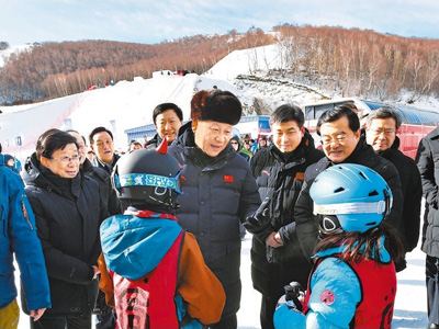 1月23日,中共中央總書(shū)記、國(guó)家主席、中央軍委主席習(xí)近平在河北省張家口市考察北京冬奧會(huì)籌辦工作。這是習(xí)近平在云頂滑雪場(chǎng)親切勉勵(lì)參加滑雪冬令營(yíng)的少年兒童。 |