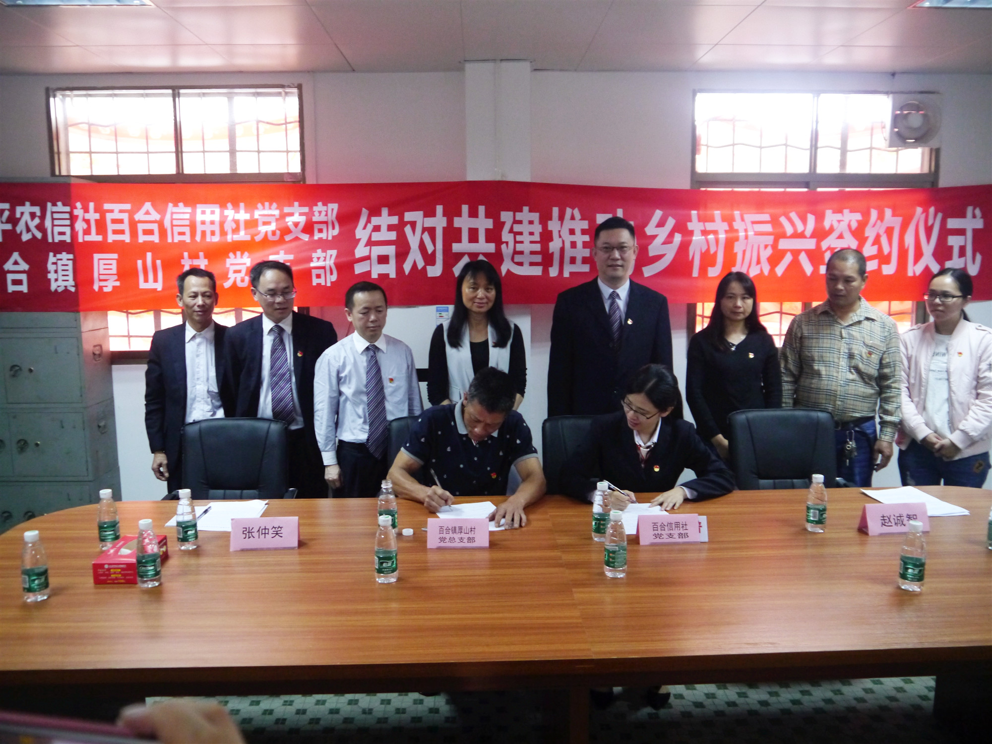 結(jié)對共建推動鄉(xiāng)村振興是深入貫徹黨的十九大精神,加快“三農(nóng)”發(fā)展,推動鄉(xiāng)村振興的重要舉措。本次結(jié)對共建包含三個層面:一是全面加強(qiáng)黨的建設(shè);二是加快鄉(xiāng)村產(chǎn)業(yè)發(fā)展;三推進(jìn)鄉(xiāng)村全面振興。會上雙方黨支部對結(jié)對共建統(tǒng)一了意向,達(dá)成了共識,雙方簽訂結(jié)對共建意向書,之后百合信用社黨支部向厚山村黨總支部授予“千行千村黨建共建”及“金融服務(wù)站”牌匾。