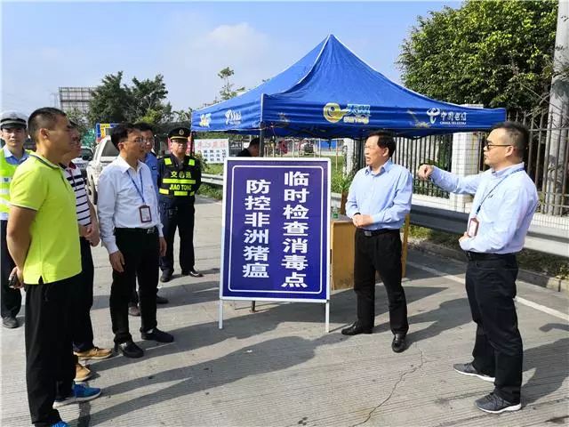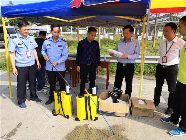 會(huì)議結(jié)束后,開(kāi)平市迅速組織農(nóng)業(yè)局等部門單位工作人員開(kāi)展大檢查,黃國(guó)忠?guī)ьI(lǐng)檢查組一行先后到開(kāi)陽(yáng)高速沙塘收費(fèi)站、沈海高速塘口收費(fèi)站等防控非洲豬瘟臨時(shí)檢查消毒點(diǎn)進(jìn)行實(shí)地查看,檢查執(zhí)勤點(diǎn)是否按照有關(guān)規(guī)定配備值班人員、消毒藥水以及宣傳單張。在檢查過(guò)程中,黃國(guó)忠要求,各個(gè)鎮(zhèn)(街)嚴(yán)格落實(shí)好值班制度,執(zhí)勤人員要把好記錄關(guān),對(duì)標(biāo)“嚴(yán)防死守”,及時(shí)、真實(shí)記錄好運(yùn)豬車輛的過(guò)往情況,確保防控工作落實(shí)到位。
