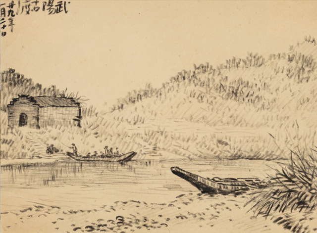 三江風景組圖之三 胡根天 20x28cm 紙本竹筆水墨 1939年 私人藏