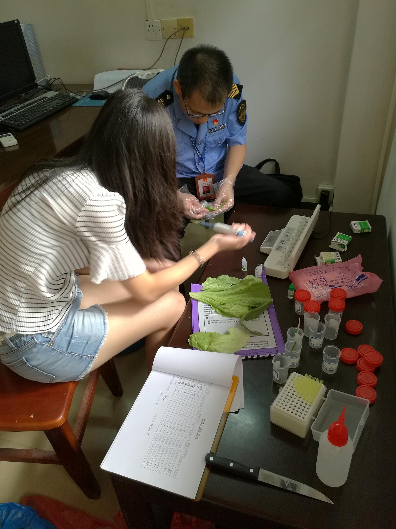 執(zhí)法人員深入百合圩農(nóng)貿(mào)市場(chǎng)進(jìn)行食用農(nóng)產(chǎn)品快檢,隨機(jī)對(duì)大白菜、油麥菜、生菜、茄子等15個(gè)批次的蔬菜進(jìn)行農(nóng)藥殘留快速檢測(cè),結(jié)果均未發(fā)現(xiàn)超標(biāo)不合格等異常情況。
