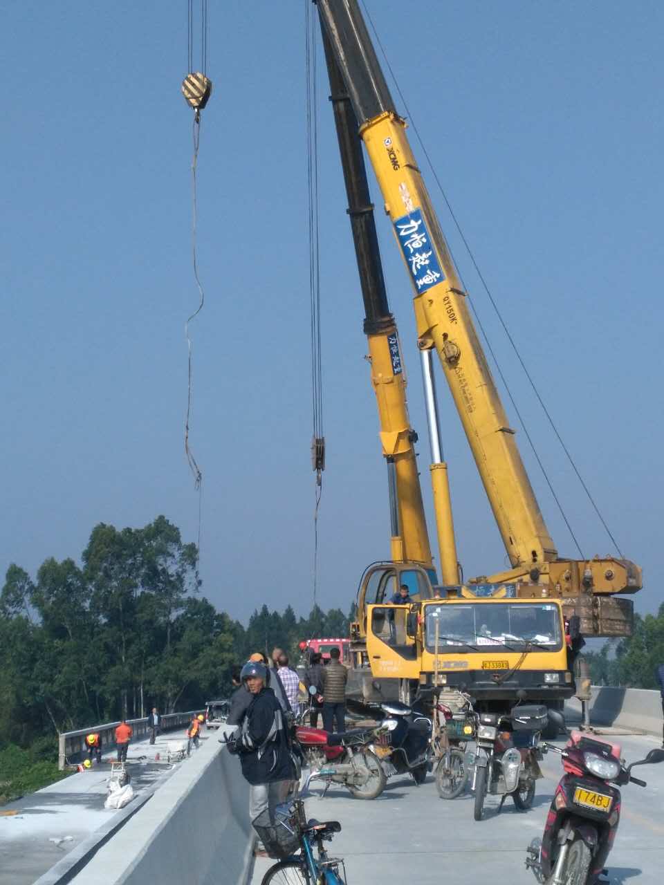 11月30日至12月1日,百合大橋(舊橋)拆除工作進入拆除橋面階段。由于施工的吊機需占用新橋橋面,因此在施工前,鎮(zhèn)城鎮(zhèn)建設(shè)管理與環(huán)保局提前張貼交通管制告示,并聯(lián)絡(luò)好馬降龍村委會、碉樓旅游公司等單位做好過往車輛、游客、村民的告知工作。施工期間,各有關(guān)單位、出入的村民對新橋機動車輛實行限行管制工作表示配合,并積極支持做好拆橋工作。