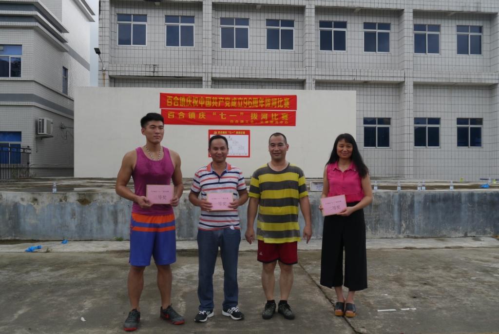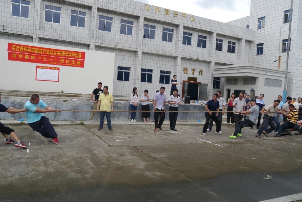 6月22日下午,為慶祝中國(guó)共產(chǎn)黨成立96周年,百合鎮(zhèn)組織鎮(zhèn)機(jī)關(guān)事業(yè)、各村(社區(qū))、垂直部門以及“兩新”企業(yè)黨組織等的廣大黨員、群眾職工,齊聚鎮(zhèn)政府大院,舉行慶“七一”拔河比賽。