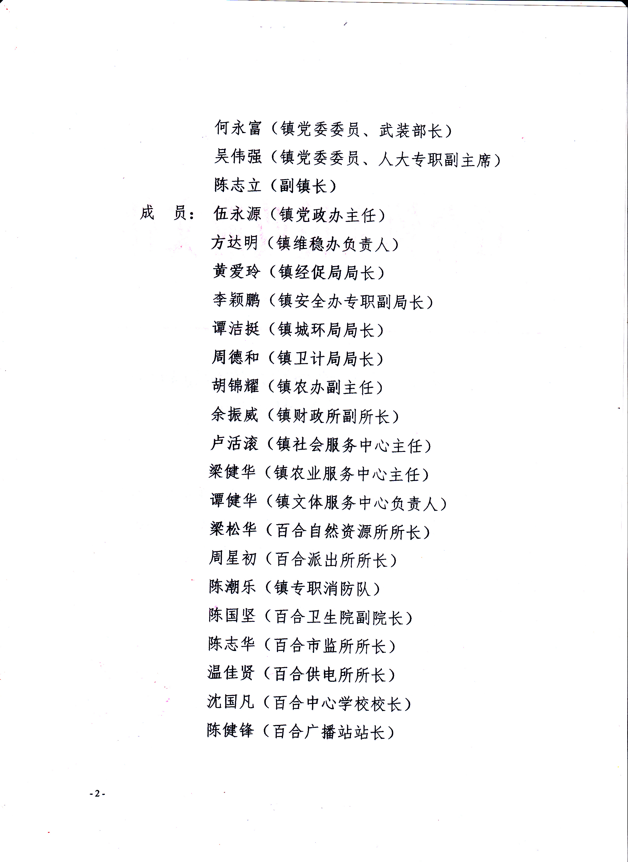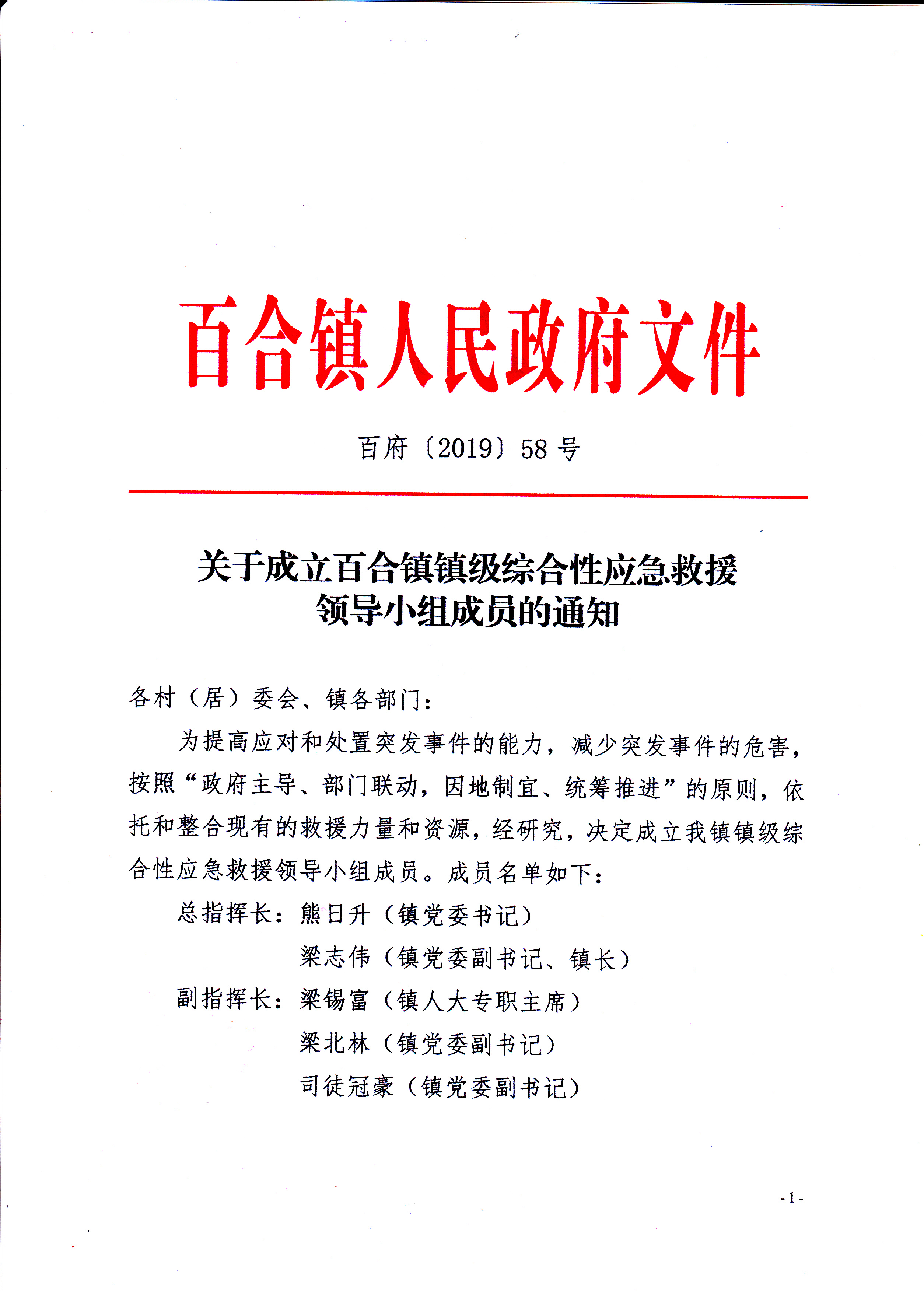關(guān)于成立百合鎮(zhèn)鎮(zhèn)級(jí)綜合性應(yīng)急救援領(lǐng)導(dǎo)小組成員的通知