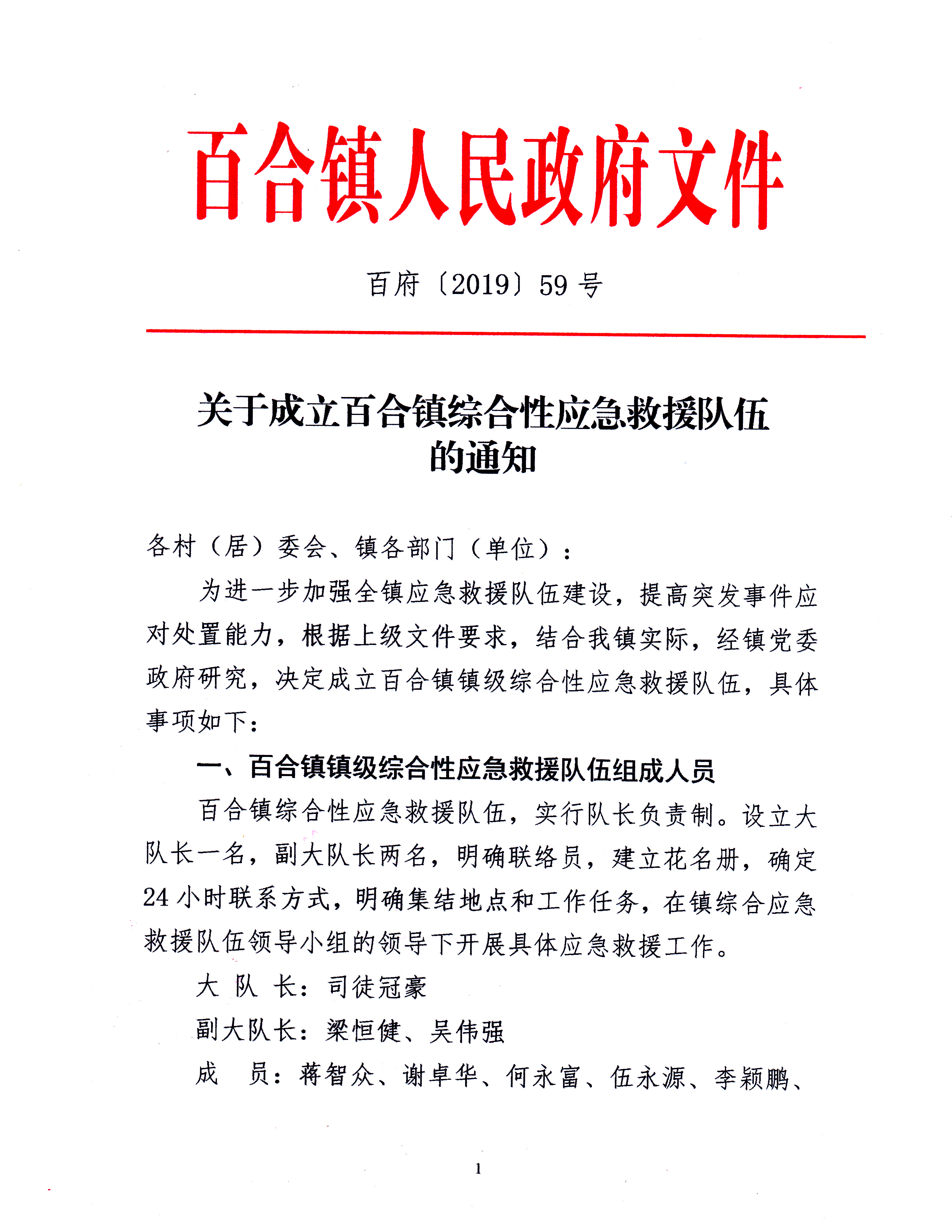 關(guān)于成立百合鎮(zhèn)綜合性應(yīng)急救援隊伍的通知