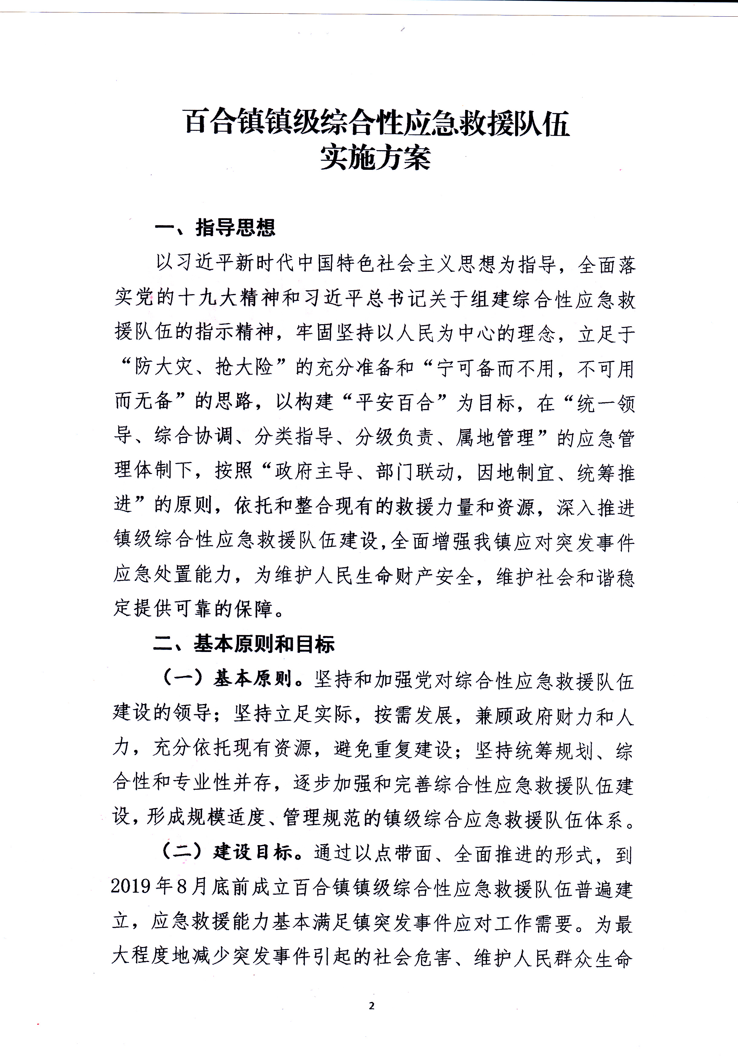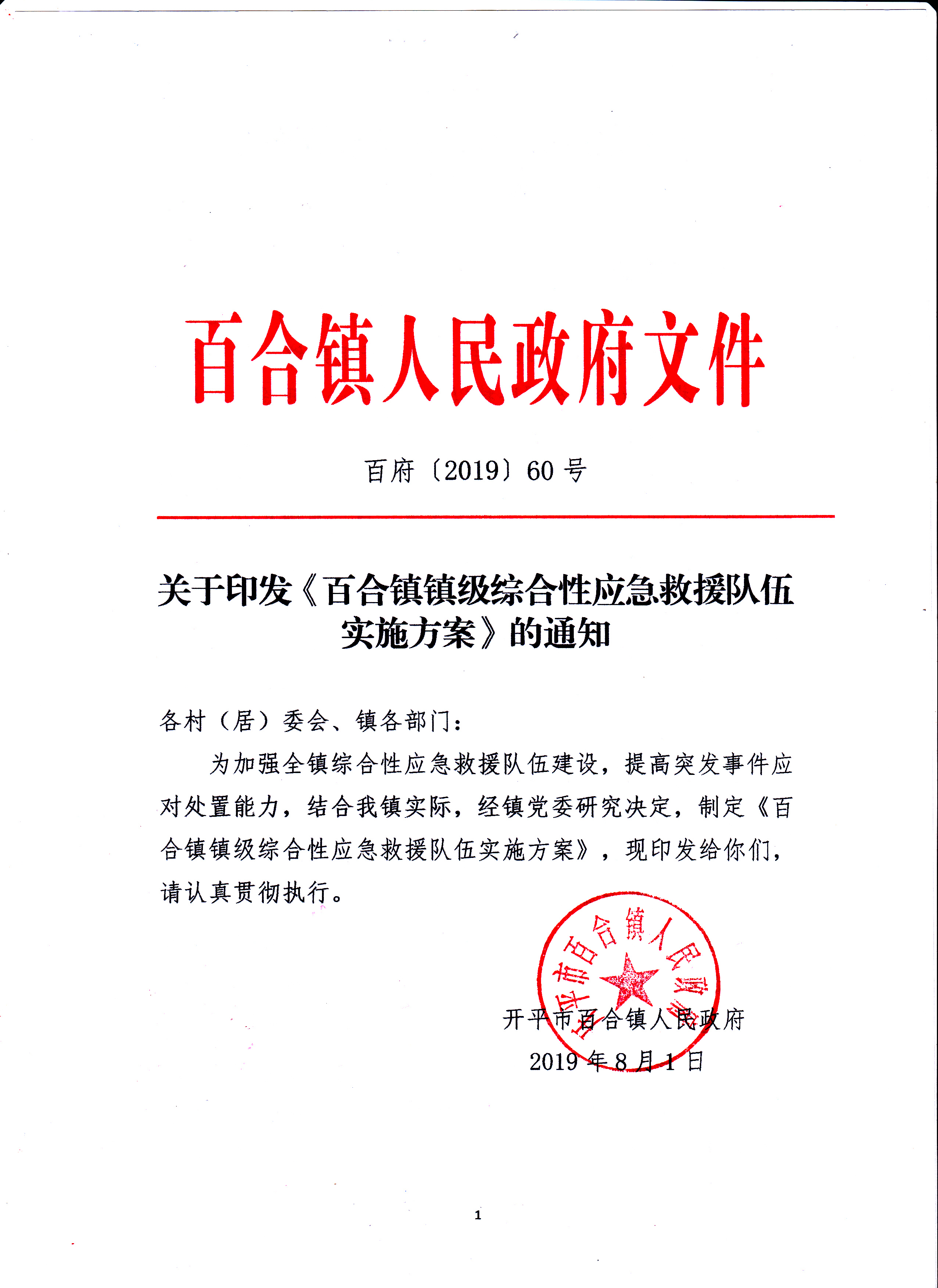 關于印發(fā)《百合鎮(zhèn)鎮(zhèn)級綜合性應急救援隊伍實施方案》的通知