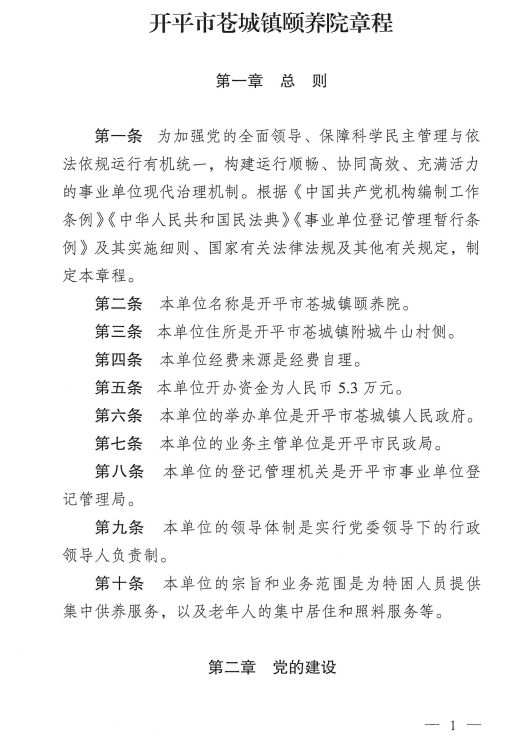 開平市蒼城鎮(zhèn)頤養(yǎng)院章程