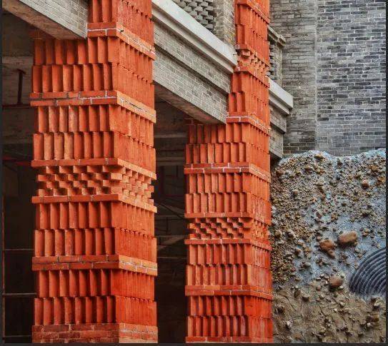 標(biāo)準(zhǔn)化的建設(shè)項(xiàng)目下,無圖紙依據(jù)的施工必然受到規(guī)范流程的排擠,在建造過程中,更是出現(xiàn)了材料的送檢難關(guān),古窯磚作為回收材料,沒有專業(yè)的廠家生產(chǎn),在使用的過程中也遇到了諸多的難題。