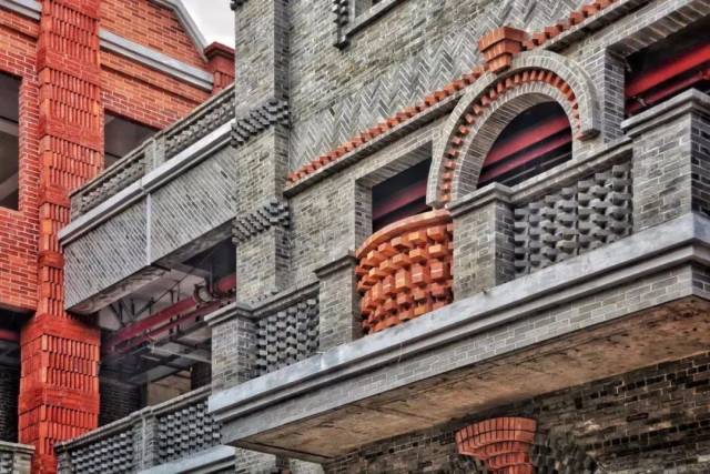 如果說僑小館給我們未來的項(xiàng)目帶來了啟示,那么放在第一位就是遺產(chǎn)的解構(gòu)和重構(gòu)。磚,作為傳統(tǒng)的建造材料,歷史悠久,廣府地區(qū)的傳統(tǒng)建筑多為青磚和紅磚砌筑墻體,已經(jīng)形成了地方的建筑特色;但由于其生產(chǎn)過程對(duì)土地和環(huán)境的破壞性,近年來,國(guó)家已明令禁止使用粘土磚建造房屋。