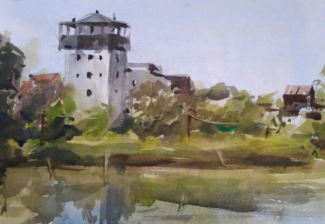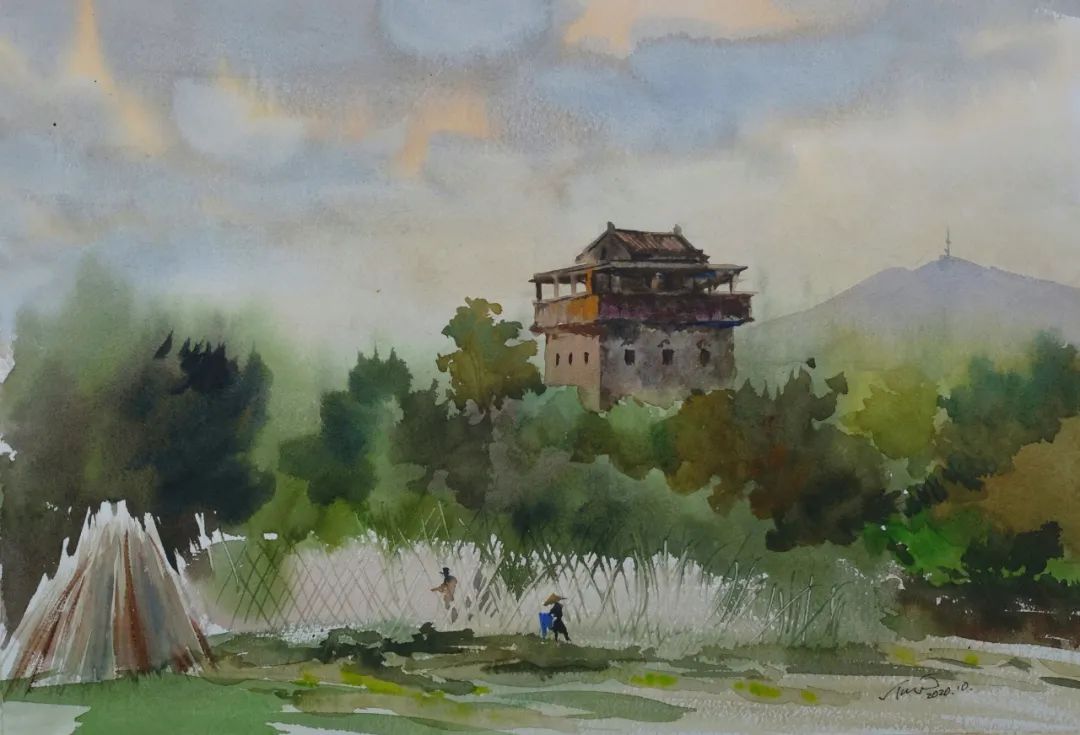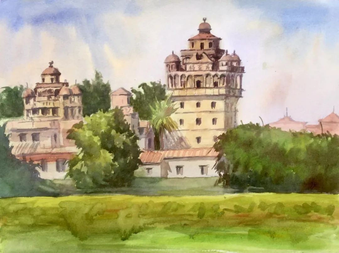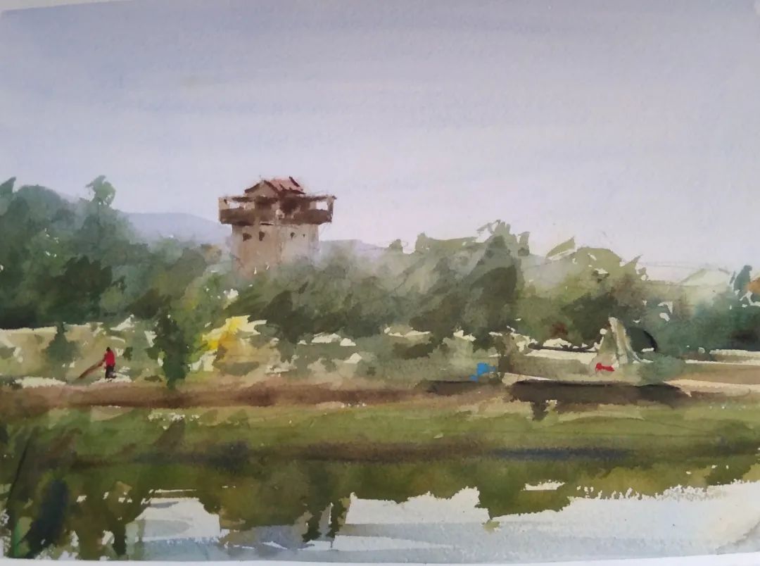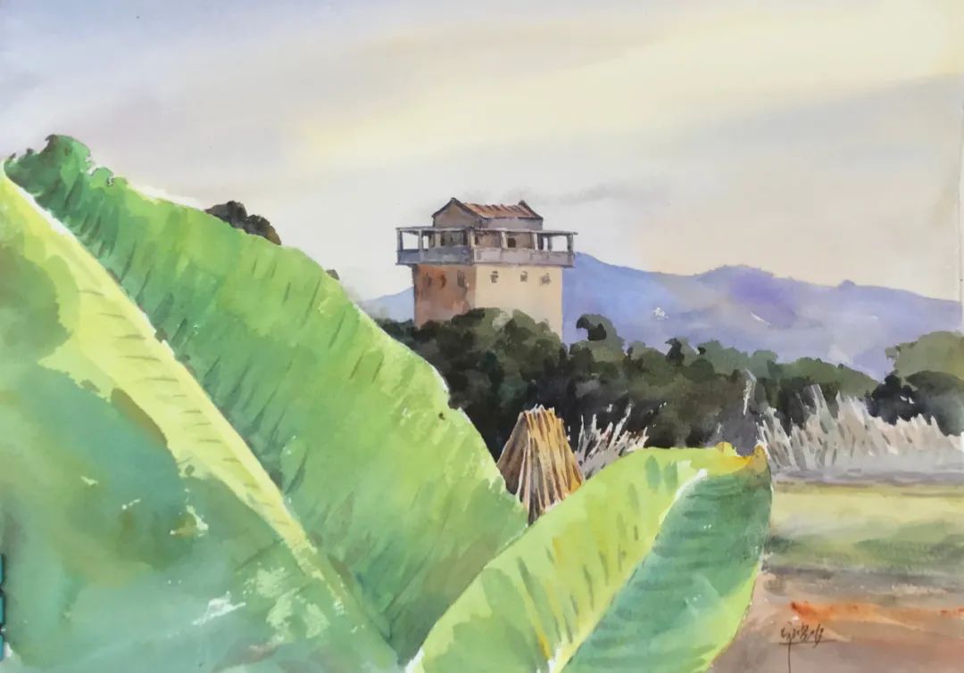 畫家們主要圍繞鄉(xiāng)村碉樓這個(gè)主題,以水彩和油畫的形式進(jìn)行創(chuàng)作,在他們的作品當(dāng)中,盡管沒(méi)有磅礴的高山流水,但通過(guò)人、碉樓、山和水,傳遞一種靜謐意境。從他們作品中可以看到,形意自然而主客兼得。他們秉持藝術(shù)創(chuàng)造性的同時(shí),把視角投向我市鄉(xiāng)村碉樓,進(jìn)行實(shí)地寫生。他們?cè)诖笞匀幻媲爸ч_(kāi)畫架,相約同行,互相觀摩,互相交流,共同探討,佳作不斷。連續(xù)8天,每名畫家收獲多多,創(chuàng)作美術(shù)作品每人達(dá)20多幅。