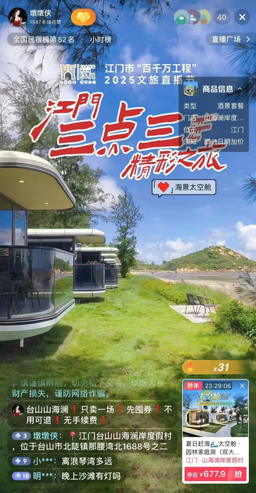 今天晚上,江門市“百千萬(wàn)工程”文旅直播節(jié)將正式啟動(dòng),持續(xù)至9月15日結(jié)束。活動(dòng)期間,百場(chǎng)達(dá)人直播(40場(chǎng)現(xiàn)場(chǎng)直播+60場(chǎng)綠幕直播)、百條種草視頻,將送出涵蓋酒店住宿、景區(qū)樂(lè)園、特色美食等眾多低價(jià)爆款江門文旅產(chǎn)品。記得鎖定抖音平臺(tái),搜索#江門三點(diǎn)三精彩之旅、#看見(jiàn)百千萬(wàn)尋美新僑鄉(xiāng)話題,參與搶購(gòu)。 值得一提的是,9月4日18:00—19:00,赤坎·廣東華僑國(guó)際旅游度假區(qū)、康橋溫泉度假酒店、猛虎峽生態(tài)旅游度假區(qū)、江門古勞水鄉(xiāng)景區(qū)、恩平山泉灣溫泉城、古兜溫泉度假區(qū)、江門長(zhǎng)廊生態(tài)園、潭江半島酒店&廣東名門食品、巴貝高文旅集團(tuán)、江門名冠金凱悅酒店將進(jìn)駐活動(dòng)現(xiàn)場(chǎng)的直播間,帶您“云游”僑鄉(xiāng)風(fēng)情,為您送出更多驚喜文旅福利。