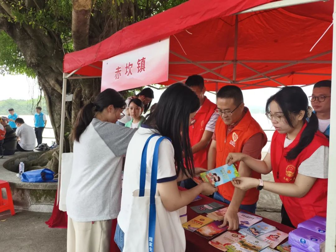 活動(dòng)現(xiàn)場(chǎng),赤坎鎮(zhèn)黨政和人大辦、公共服務(wù)辦、平安法治辦、禁毒辦、應(yīng)急管理辦、規(guī)劃建設(shè)辦、鎮(zhèn)總工會(huì)、婦聯(lián)、團(tuán)委、赤坎司法所、消防隊(duì)等多部門(mén)聯(lián)合“開(kāi)攤”宣傳,赤坎鎮(zhèn)人大代表也積極參與其中。