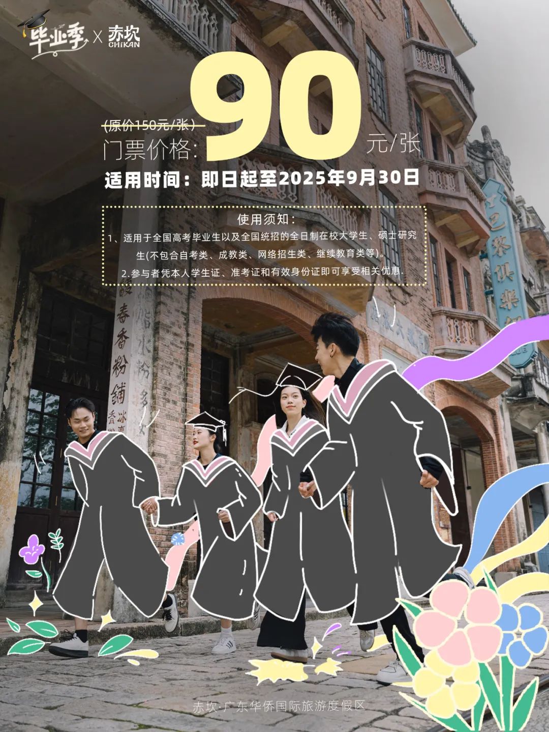 第一件事:對(duì)于經(jīng)濟(jì)還未獨(dú)立的學(xué)子們,赤坎華僑古鎮(zhèn)啟動(dòng)畢業(yè)季限時(shí)優(yōu)惠!今年的全國(guó)高考畢業(yè)生以及全國(guó)統(tǒng)招的全日制在校大學(xué)生、碩士研究生可憑有效證件享受畢業(yè)季游赤坎限時(shí)優(yōu)惠,僅需90元/人。