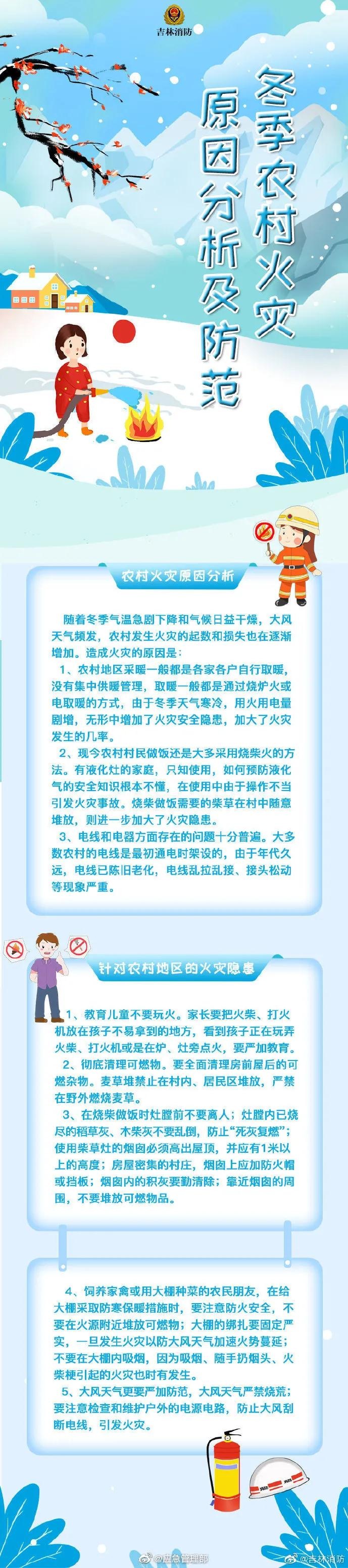冬季天干物燥,是農(nóng)村火災(zāi)的高發(fā)季節(jié)。一場火災(zāi)可能燒沒了村民辛苦多年的心血,甚至可能造成人員傷亡。農(nóng)村消防安全需要格外關(guān)注!讓我們一起了解農(nóng)村火災(zāi)發(fā)生的原因和防范重點。
