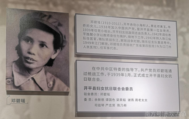 她就是鄧碧瑤(1910-2011年),原名鄧美玉,出身于開(kāi)平赤坎鎮(zhèn)小海村的一個(gè)華僑家庭。雖然家庭富裕,但是不圖安逸的她投身革命跟黨走,于1938年加入中國(guó)共產(chǎn)黨,是開(kāi)平第一位女共產(chǎn)黨員,她負(fù)責(zé)在當(dāng)?shù)匕l(fā)動(dòng)和組織婦女運(yùn)動(dòng)。