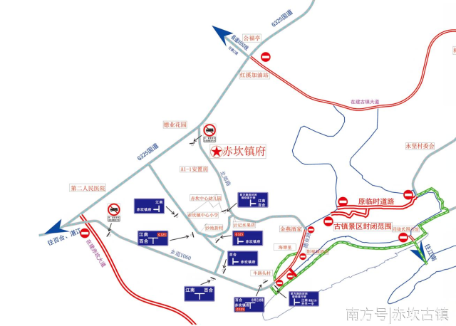 1、在金燕酒家和海塘里村口處設(shè)置路障以及指引標(biāo)識(shí)等交通引導(dǎo)標(biāo)志,禁止所有社會(huì)車輛通行。