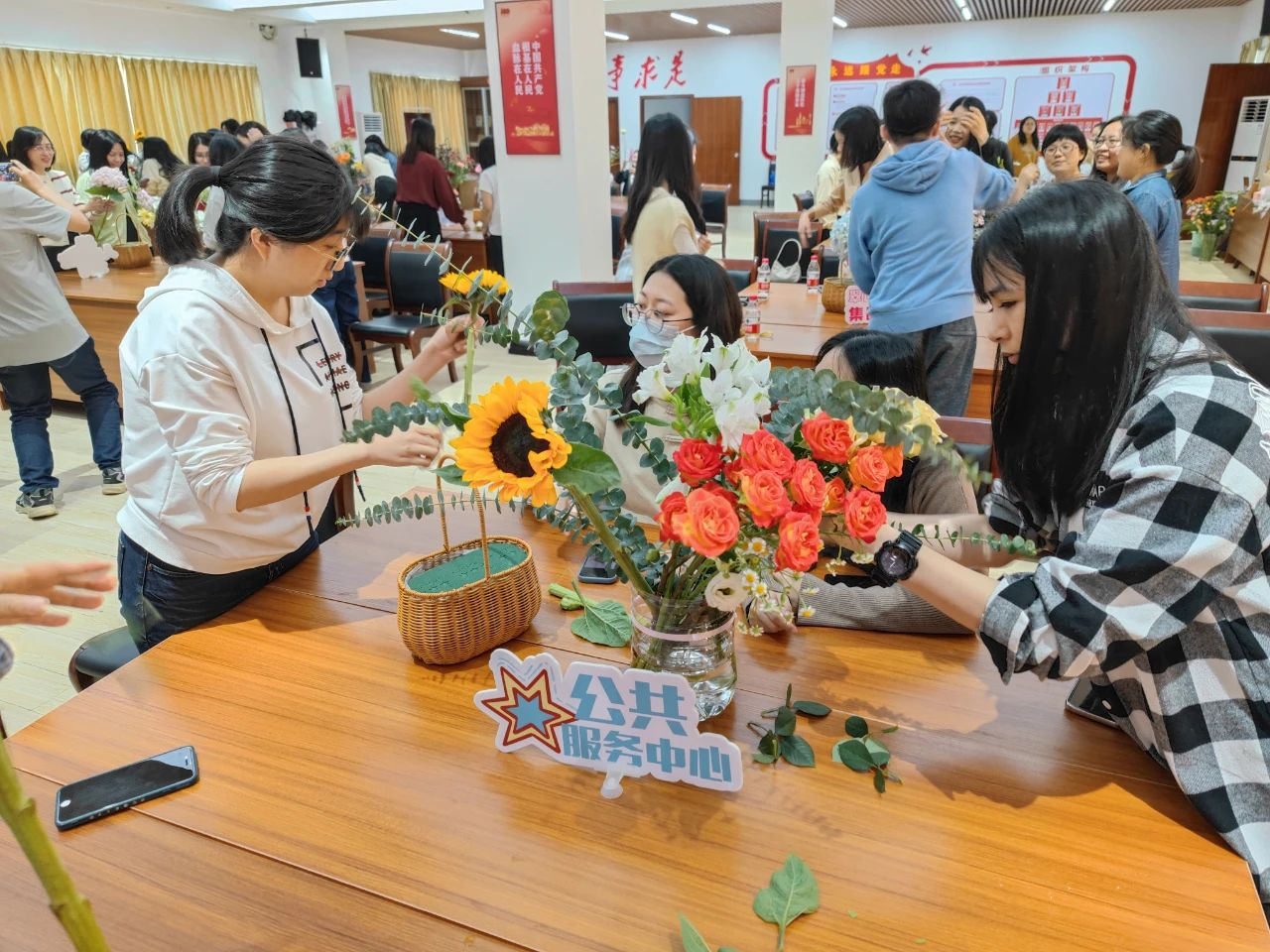 活動伊始,翠山湖管委會總經(jīng)濟師、婦委會主任張淑媛同志向大家致以節(jié)日的問候,來自不同崗位的女干部職工歡聚一堂,喜慶自己的節(jié)日。活動中,專業(yè)花藝師詳細講解了插花的基本步驟、色彩搭配技巧等知識,耐心指導大家進行插花。在修剪、插藍、點綴過程中,各女干部職工以自己喜歡的方式,自由表達,飽享鮮花裝點的美好時刻。隨后,大家分成12個隊伍開始進行團體和個人花籃插花制作,不久,一籃藍漂亮雅致的花藝作品便在歡聲笑語中誕生了。大家陶醉其中,感受著從自己手中綻放的浪漫?,F(xiàn)場頓時成為花的海洋,氣氛溫馨而浪漫。