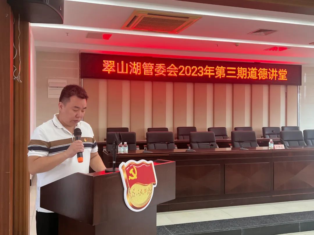 活動(dòng)圍繞“七個(gè)一”有序開展,包括聽一首歌《說到做到》、看一段誠(chéng)信主題微視頻、誦一段經(jīng)典國(guó)學(xué)詩(shī)文等方式,講述以“誠(chéng)信立世”為核心的道德精神。通過此次道德講堂活動(dòng),全體黨員干部職工在參與中認(rèn)知、感悟道德觀念,提升個(gè)人道德修養(yǎng),推動(dòng)形成以誠(chéng)信為本、誠(chéng)信待人、誠(chéng)信工作、和睦共存的良好氛圍,倡導(dǎo)做人做事誠(chéng)實(shí)守信,激勵(lì)黨員干部職工自省吾身,做誠(chéng)實(shí)守信人,樹誠(chéng)實(shí)守信家風(fēng),更好的傳承中華優(yōu)秀傳統(tǒng)文化,并將繼續(xù)為翠山湖園區(qū)高質(zhì)量發(fā)展作出更大貢獻(xiàn)。