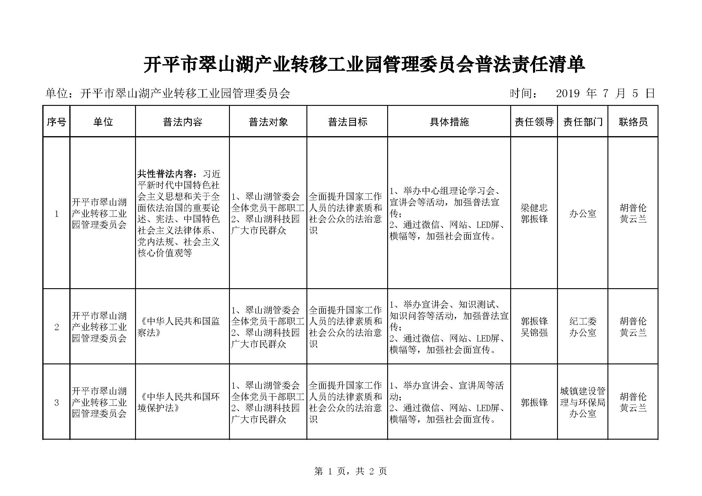 翠山湖普法責(zé)任清單及“七五”普法工作成果