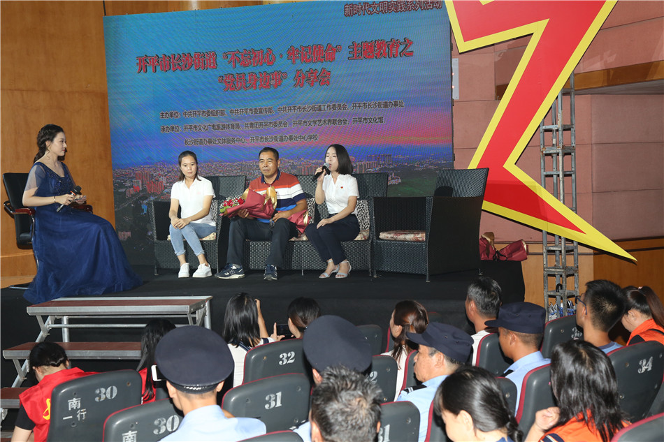 9月5日晚上,長沙街道“不忘初心、牢記使命”主題教育之“黨員身邊事”分享會(huì)在市人民會(huì)堂舉行,宣傳推廣一批先進(jìn)典型,大力弘揚(yáng)社會(huì)正能量。開平市領(lǐng)導(dǎo)龐正華、陳軍凱、顏海娜、李寶貞、黃力奔出席晚會(huì)。 市委副書記、組織部部長、政法委書記陳軍凱在致辭中肯定了長沙街道黨工委創(chuàng)新提出以“黨員身邊事”為抓手,通過“實(shí)在事、帶動(dòng)人、成氛圍”,唱響“黨建引領(lǐng)揚(yáng)正氣、黨員帶動(dòng)聚正能”黨建主旋律等工作。他希望與會(huì)人員以參加這次分享會(huì)為契機(jī),更好地從“黨員身邊事”和先鋒模范人物身上汲取力量,將身邊的正能量轉(zhuǎn)化成不懈前進(jìn)的動(dòng)力。同時(shí),也希望全市廣大干部群眾從思想上、行動(dòng)上更加自覺地學(xué)習(xí)先進(jìn)、追趕先進(jìn)、爭當(dāng)先進(jìn),立足崗位、不忘初心、逐夢前行,全力搶抓粵港澳大灣區(qū)發(fā)展機(jī)遇,積極參與創(chuàng)建全國文明城市,為開平經(jīng)濟(jì)社會(huì)加快發(fā)展作出新的更大貢獻(xiàn)。 在“黨員身邊事”分享會(huì)前,出席晚會(huì)的領(lǐng)導(dǎo)先后向獲得2019年長沙街道“十佳教師”、開平市2019年度第一季度、第二季度“開平好人”、“江門市優(yōu)秀共產(chǎn)黨員、優(yōu)秀黨務(wù)工作者、先進(jìn)基層黨組織”等榮譽(yù)稱號的個(gè)人、組織頒獎(jiǎng),對他們?yōu)槿薪?jīng)濟(jì)社會(huì)和各項(xiàng)事業(yè)的發(fā)展作出積極貢獻(xiàn)表示感謝。 隨后,分享會(huì)通過“讓身邊人說身邊事,用身邊事帶身邊人”的方式,以觀看視頻、與主持人互動(dòng)等形式,讓與會(huì)人員聆聽、了解長沙街道10件“黨員身邊事”,生動(dòng)詮釋和真實(shí)傳遞了社會(huì)正能量。 開平市委書記龐正華和長沙街道黨工委負(fù)責(zé)人共同為他們頒獎(jiǎng)。 分享會(huì)上,還穿插了具有本土特色文化的歌、舞等表演,寓意全市上下,干群同心,努力譜寫僑鄉(xiāng)建設(shè)新篇章。