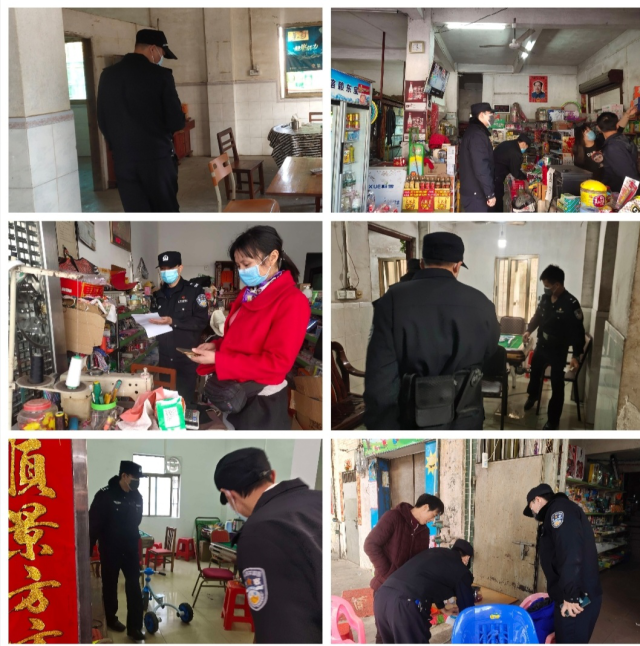 ▲派出所民警配合相關(guān)部門檢查轄區(qū)飯店關(guān)停情況