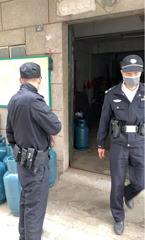 ▲派出所民警對(duì)轄區(qū)液化氣銷售點(diǎn)進(jìn)行檢查
