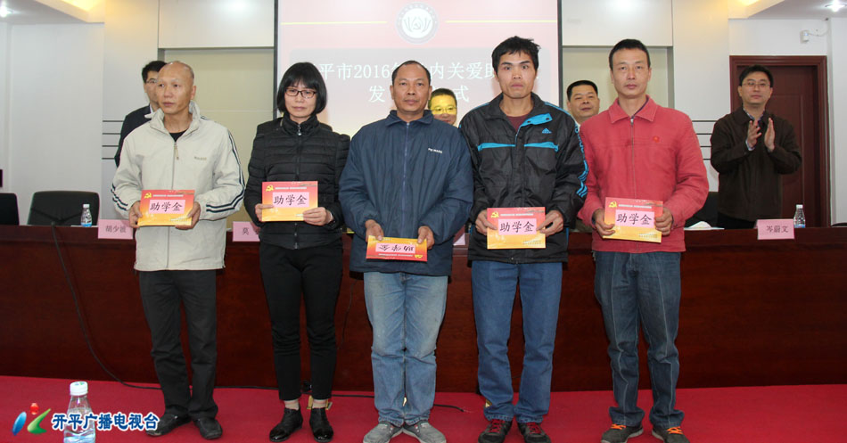 【開平廣播電視臺(tái) 余映意】12月2日上午,開平市舉行2016年黨內(nèi)關(guān)愛助學(xué)金發(fā)放儀式,向全市40戶特殊困難黨員子女開展助學(xué)幫扶,發(fā)放助學(xué)金達(dá)10.9萬元。開平市委常委、組織部部長(zhǎng)陳軍凱出席發(fā)放儀式。