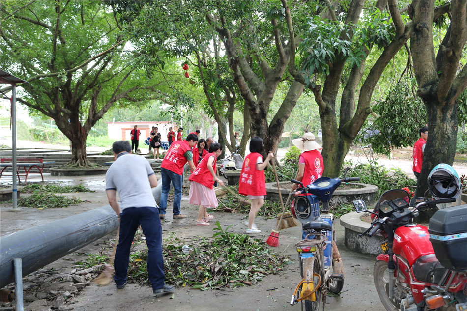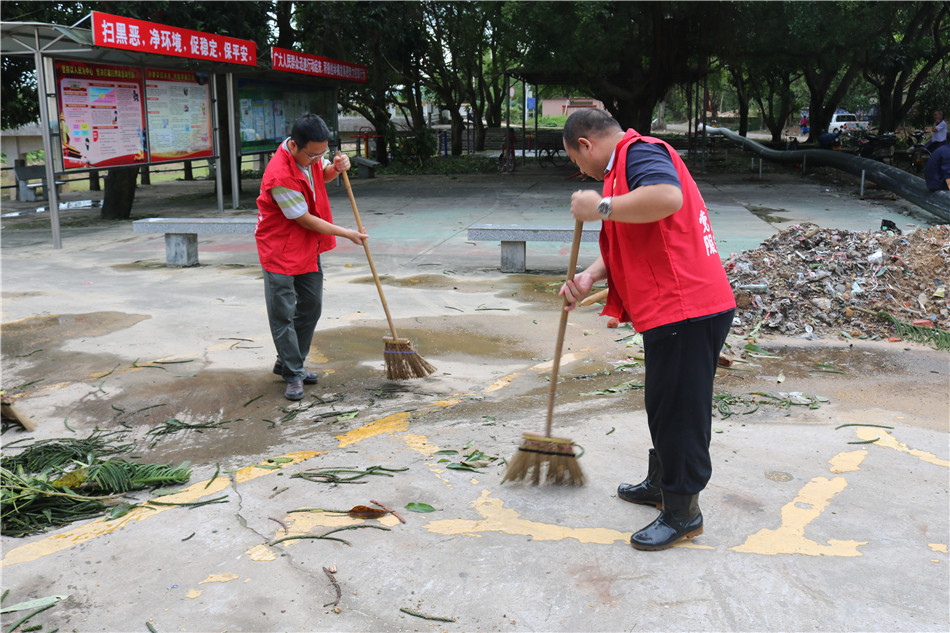 臺(tái)風(fēng)過(guò)后有多處的綠化樹(shù)木被刮倒,滿地?cái)嘀β淙~,赤水鎮(zhèn)專門(mén)安排運(yùn)輸車輛和清潔工具,全力以赴做好清潔清障工作,及時(shí)清掃斷枝落葉、清除積水淤泥、清理垃圾雜物等。全體黨員義工分工合作、同心協(xié)力,一處一處地清掃,還道路一片清潔。