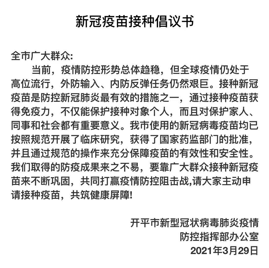 近日,記者從開(kāi)平市疾控中心了解到,開(kāi)平市新增了3個(gè)新冠病毒疫苗臨時(shí)接種點(diǎn),進(jìn)一步提升新冠疫苗接種服務(wù)能力,滿足廣大市民的接種需求。