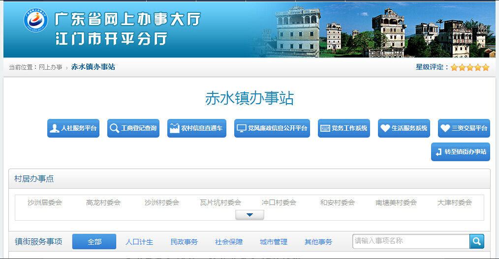 圖2:網(wǎng)上辦事大廳江門市開平分廳赤水鎮(zhèn)辦事站