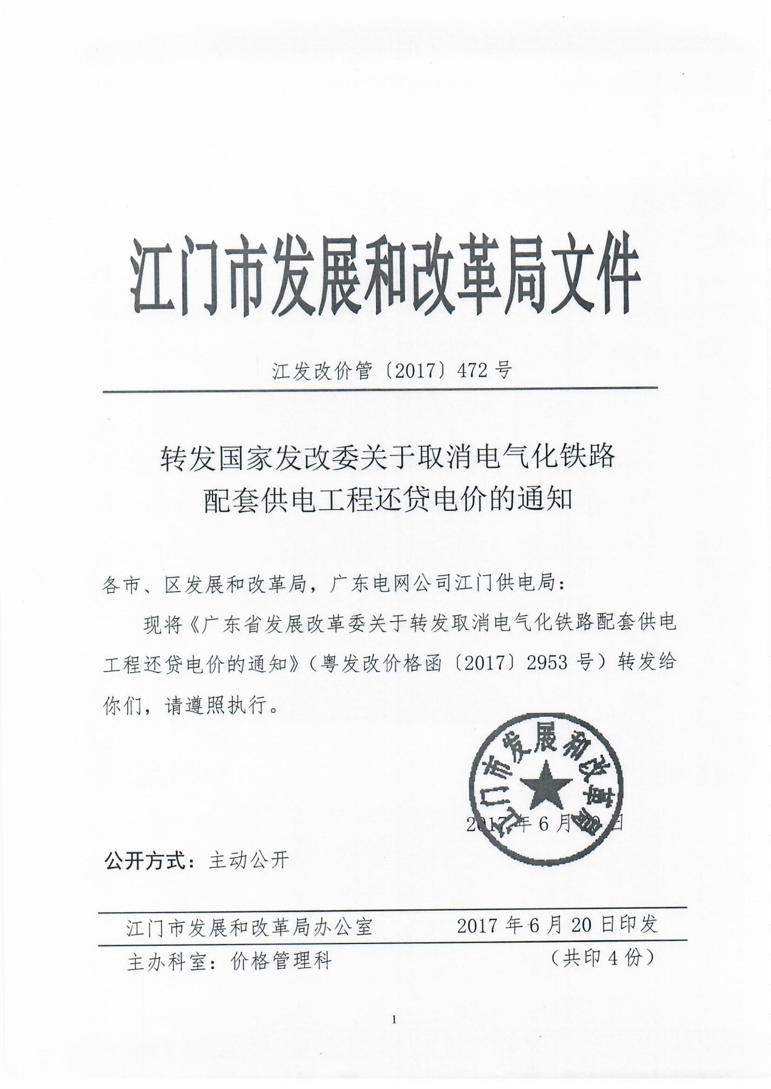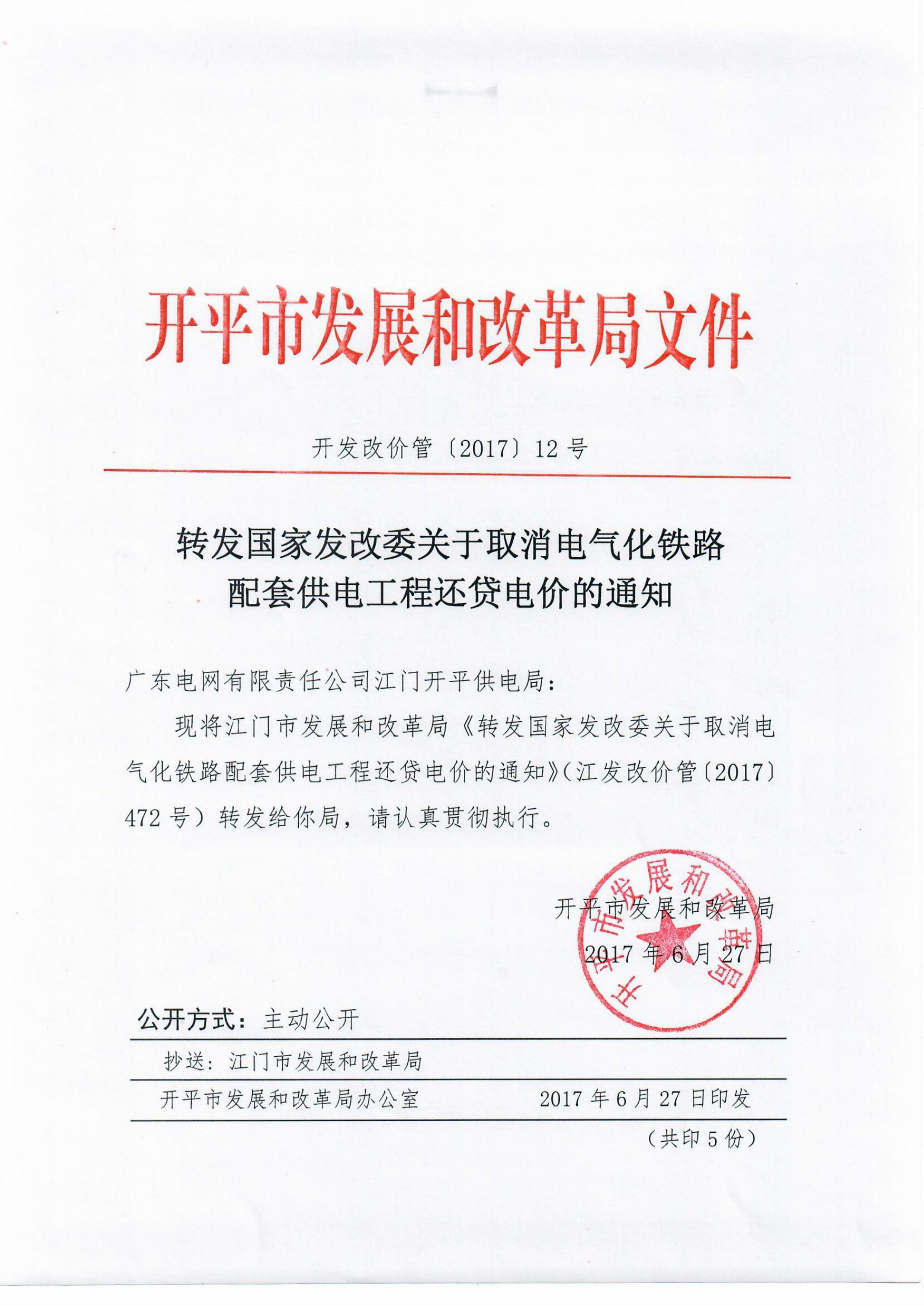 國家發(fā)改委關(guān)于取消電氣化鐵路配套供電工程還貸電價的通知