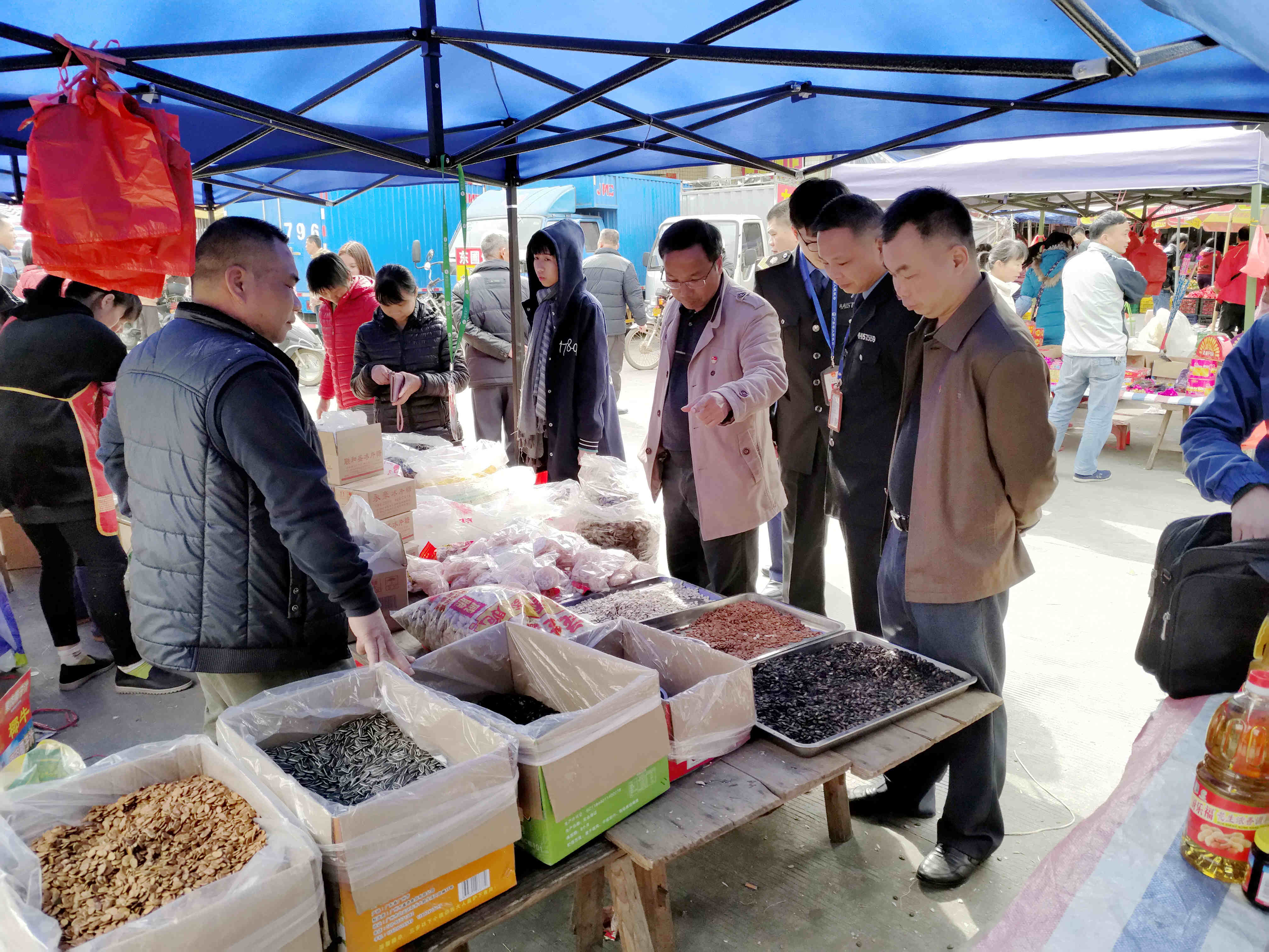 春節(jié)將至,家家戶(hù)戶(hù)購(gòu)買(mǎi)年貨過(guò)年,是食品安全風(fēng)險(xiǎn)集中,事故易發(fā)的敏感時(shí)段,為了防范食品安全事故的發(fā)生,大沙鎮(zhèn)于2月12日上午,由大沙鎮(zhèn)食安辦牽頭農(nóng)業(yè)服務(wù)中心聯(lián)合蒼城食品藥品監(jiān)督管理所、龍勝工商所執(zhí)法隊(duì)對(duì)大沙鎮(zhèn)超市、市場(chǎng)、小作坊、攤販進(jìn)行食品安全專(zhuān)項(xiàng)檢查。