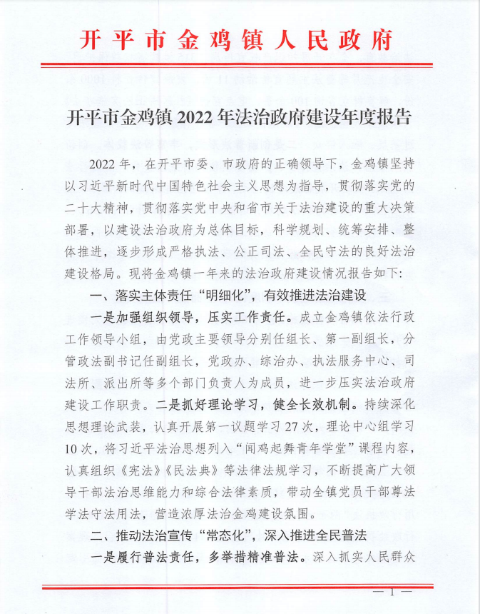 開平市金雞鎮(zhèn)2022年法治政府建設(shè)年度報(bào)告