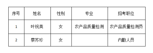根據(jù)《金雞鎮(zhèn)人民政府招聘合同制工作人員公告》,經(jīng)報(bào)名、筆試、資格審查、面試、體檢、考察等工作程序,葉祝英等2位同志符合所報(bào)崗位的資格條件,擬同意聘用,現(xiàn)予以公示。