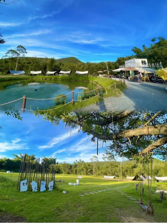 這兩處營地的“走紅”,離不開新農(nóng)人的返鄉(xiāng)創(chuàng)業(yè)。作為省“百千萬工程”典型村,游東村近年來累計吸引20余名新農(nóng)人回到家鄉(xiāng),通過高效盤活村中閑置的魚塘、草地等資源,打造出“東地溪營”“勝和營地”等特色農(nóng)旅消費場景。90后青年關一汶便是其中之一,他打造的露營基地不僅提供露營裝備租賃、特色餐飲,還幫助村民銷售花生、龍眼等農(nóng)產(chǎn)品,讓游客感受地道鄉(xiāng)土味。