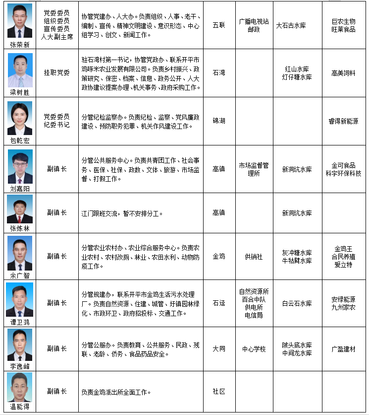 金雞鎮(zhèn)領(lǐng)導(dǎo)班子成員分工(2024.02更新)