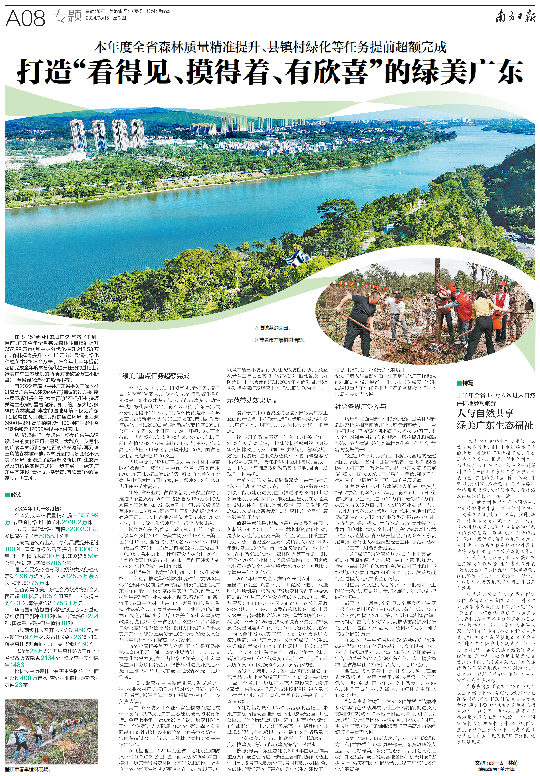 8月15日是全國(guó)生態(tài)日。目前,廣東今年全省完成森林質(zhì)量精準(zhǔn)提升357.99萬畝(其中林分優(yōu)化提升213.53萬畝、森林撫育提升144.46萬畝),縣鎮(zhèn)村綠化種植苗木2108.2萬株。在今年上半年提前超額完成全年度林分優(yōu)化提升任務(wù)的基礎(chǔ)上,綠美廣東生態(tài)建設(shè)的兩項(xiàng)關(guān)鍵數(shù)據(jù)仍在不斷攀升,全省綠化造林的熱情不減。 自2022年底,《中共廣東省委關(guān)于深入推進(jìn)綠美廣東生態(tài)建設(shè)的決定》審議通過以來,森林質(zhì)量精準(zhǔn)提升等“六大行動(dòng)”不斷推進(jìn),多項(xiàng)關(guān)鍵生態(tài)指標(biāo)顯著向好。如今的廣東大地,多樣的森林類型、豐富的濕地環(huán)境不僅為廣東1.2億常住人口創(chuàng)造良好的居住環(huán)境,更為逾6600種野生高等植物、近1100種陸生野生脊椎動(dòng)物和超12000種昆蟲提供家園。 從“綠起來”到“美起來”,綠美廣東生態(tài)建設(shè)帶來的變化正切實(shí)惠及廣大群眾。從粵北的廣袤森林,到粵東粵西的綿長(zhǎng)海岸,再到珠三角的森林城市群,森林質(zhì)量的悄然變化不僅美了環(huán)境,更創(chuàng)造了致富增收新機(jī)遇,生態(tài)產(chǎn)品及其價(jià)值實(shí)現(xiàn)方式進(jìn)一步豐富——綠美廣東生態(tài)建設(shè)“看得見、摸得著、有欣喜”的愿景逐步走進(jìn)現(xiàn)實(shí)。 《南方日?qǐng)?bào)》專版報(bào)道 “綠美”重點(diǎn)任務(wù)超額完成 今年以來,廣東以“超額完成,看得見、摸得著、有欣喜”為要求,加速推進(jìn)森林質(zhì)量精準(zhǔn)提升和綠美廣東生態(tài)建設(shè)示范點(diǎn)、示范帶建設(shè),帶動(dòng)提升城鄉(xiāng)綠化美化水平。截至8月初,廣東已完成林分優(yōu)化提升213.53萬畝,森林撫育提升144.46萬畝,完成新造林撫育131.25萬畝;市、縣、鎮(zhèn)新增綠化面積32003.3畝、新增綠化帶長(zhǎng)度5358.1公里;對(duì)全省122個(gè)縣區(qū)、1609個(gè)圩鎮(zhèn)、2.65萬個(gè)行政村進(jìn)行綠化,計(jì)劃種植苗木1235.7萬株,目前已種植2108.2萬株,超額完成計(jì)劃任務(wù)。完成高速公路出入口綠化品質(zhì)提升超100處,國(guó)省道綠化品質(zhì)提升超1000公里。 兩項(xiàng)重要工作的提前完成,離不開林木種苗的有效保障。截至7月中旬,全省已落實(shí)苗木6703.71萬株,超量完成任務(wù);落實(shí)苗木單位128家,其中保障性苗圃65家,有力保障2024年林分優(yōu)化任務(wù)苗木需求。 此外,省林業(yè)局、省農(nóng)墾總局、省農(nóng)業(yè)農(nóng)村廳推進(jìn)8個(gè)總規(guī)模1200畝儲(chǔ)備能力120萬株的優(yōu)質(zhì)苗木儲(chǔ)備基地建設(shè),截至7月中旬,共采購(gòu)儲(chǔ)備苗木約91.35萬株,儲(chǔ)備基地基礎(chǔ)設(shè)施建設(shè)也在有序開展。共安排各地各單位優(yōu)質(zhì)苗木約75.93萬株,進(jìn)一步優(yōu)化和保障縣鎮(zhèn)村綠化苗木供應(yīng)。 城鄉(xiāng)綠化美化,群眾可感可知。目前,全省已建設(shè)森林鄉(xiāng)村39個(gè)、綠美古樹鄉(xiāng)村15個(gè)、綠美紅色鄉(xiāng)村16個(gè)。全省共有古樹名木85561株,其中一級(jí)古樹770株,二級(jí)古樹4822株,三級(jí)古樹79888株,名木81株。計(jì)劃建設(shè)古樹公園20個(gè)、古樹搶救復(fù)壯瀕危古樹250株。目前已建設(shè)古樹公園3個(gè)、搶救復(fù)壯古樹112株。 堅(jiān)持“興綠”也為群眾打通“兩山”轉(zhuǎn)化致富路。廣東穩(wěn)步推進(jìn)集體林權(quán)制度改革,貫徹落實(shí)《深化集體林權(quán)制度改革方案》,研究制定出臺(tái)《廣東省深化集體林權(quán)制度改革實(shí)施方案》,創(chuàng)新公益林利用管理和林業(yè)發(fā)展用地保障,著力打造油茶、竹子、林草中藥材、花卉苗木、家具加工、香料香精、生態(tài)旅游、森林康養(yǎng)等林業(yè)產(chǎn)業(yè)集群,打造“粵林+”特色品牌;配套出臺(tái)《綠美廣東生態(tài)建設(shè)財(cái)政激勵(lì)政策》《廣東省省級(jí)以上公益林結(jié)合森林質(zhì)量分類差異化補(bǔ)償方案》,按計(jì)劃下達(dá)2023年綠美廣東生態(tài)建設(shè)激勵(lì)資金1.08億元,省級(jí)以上公益林平均補(bǔ)償標(biāo)準(zhǔn)提高至47元/畝。 省林業(yè)局相關(guān)負(fù)責(zé)人介紹,下半年是開展森林撫育的重要時(shí)間。省林業(yè)局將進(jìn)一步加大造林綠化督導(dǎo)力度,督促各地落實(shí)綠美廣東生態(tài)建設(shè)重點(diǎn)任務(wù)項(xiàng)目資金,嚴(yán)格按序時(shí)進(jìn)度開展造林撫育工作,確保9月底前全面完成森林撫育提升任務(wù)。 “同時(shí),緊密配合省委組織部、省交通、住建、農(nóng)業(yè)農(nóng)村廳等部門,加強(qiáng)對(duì)各地縣鎮(zhèn)村綠化工作指導(dǎo),抓好縣鎮(zhèn)村綠化后期管護(hù)工作?!痹撠?fù)責(zé)人說。 其中,森林防火和林業(yè)有害生物防治是完成森林撫育、守護(hù)綠美廣東生態(tài)建設(shè)成果的重要舉措。今年上半年,出動(dòng)近23萬人次開展森林防火工作,全省整改火災(zāi)隱患2134處,整改森林安全隱患1483處;松材線蟲病等林業(yè)有害生物防治作業(yè)面積超過400萬畝次,查處林業(yè)植物檢疫違法案件23宗。 在此基礎(chǔ)上,2024年度全省計(jì)劃建設(shè)生物防火林帶1809.269公里,造林面積達(dá)53804.07畝,將進(jìn)一步完善我省森林防火