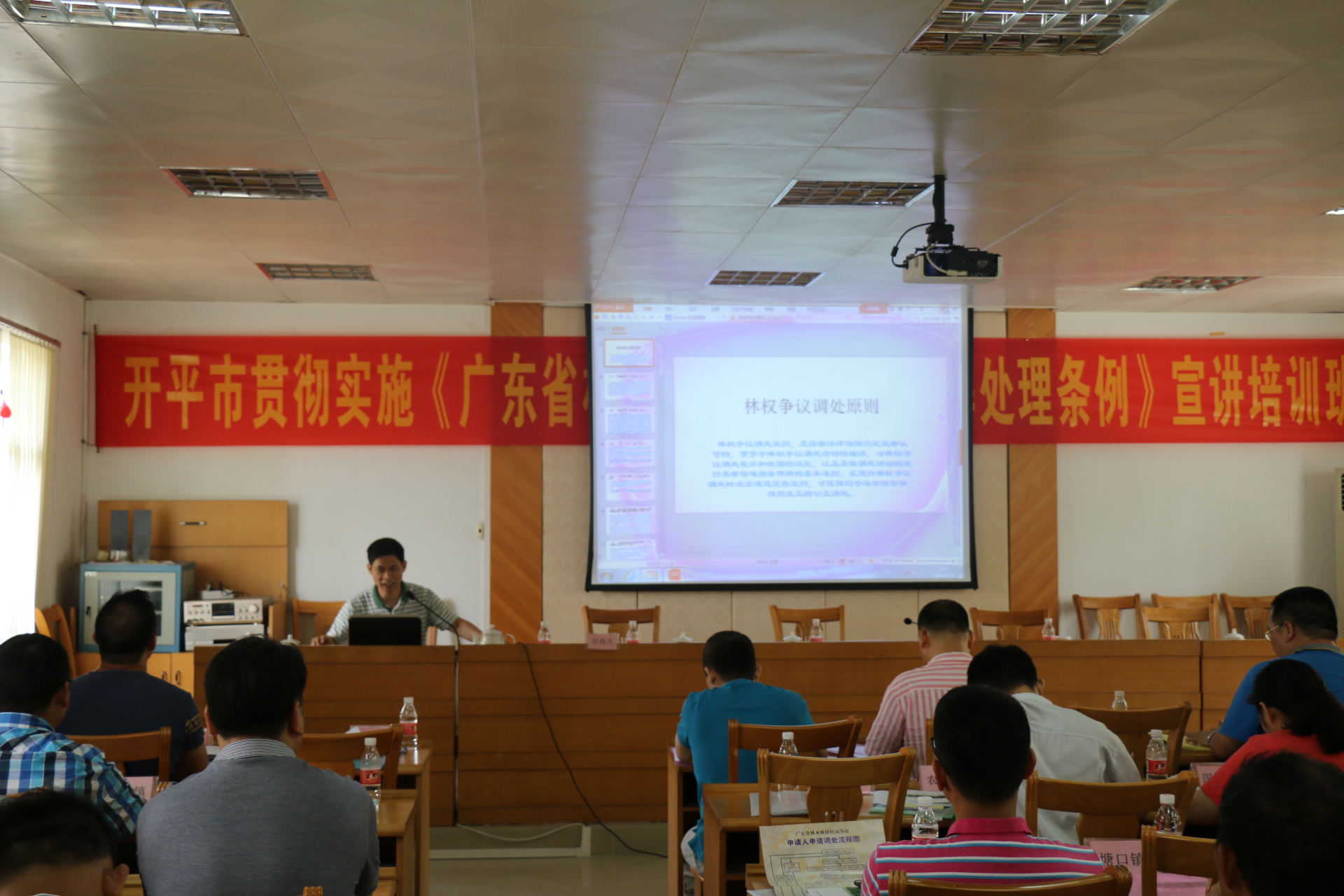 廣東省林木林地權(quán)屬爭議調(diào)解處理條例>5月31日上午,市林業(yè)局組織舉辦貫徹實施《廣東省林木林地權(quán)屬爭議調(diào)解處理條例》(以下簡稱《條例》)宣講培訓班。市人民政府林權(quán)爭議調(diào)處工作領導小組及辦公室成員和市林業(yè)局有關(guān)領導、工作人員以及各鎮(zhèn)(街)分管領導、維穩(wěn)辦主任、農(nóng)業(yè)綜合服務中心主任、相關(guān)村委會主任約70人參加了培訓。培訓班由市林業(yè)局張偉杰局長主持。 會上,市政府黃國忠副市長作了宣講培訓動員講話,對我市如何貫徹落實《條例》提出具體意見。廣東風采新紀元律師事務所梁秋帆、楊志勇律師分別對《條例》制定情況及主要制度設計、林權(quán)爭議調(diào)處原則和依據(jù)、林權(quán)爭議調(diào)處管轄與調(diào)處程序、林權(quán)爭議調(diào)處行為司法審查等內(nèi)容作了詳細清晰、圖文并茂的解讀。 通過宣講培訓,進一步提高我市林權(quán)爭議調(diào)處工作人員的調(diào)解處理水平,為切實化解矛盾,依法維護群眾的合法權(quán)益,確保林區(qū)社會和諧穩(wěn)定打下了堅實的基礎。