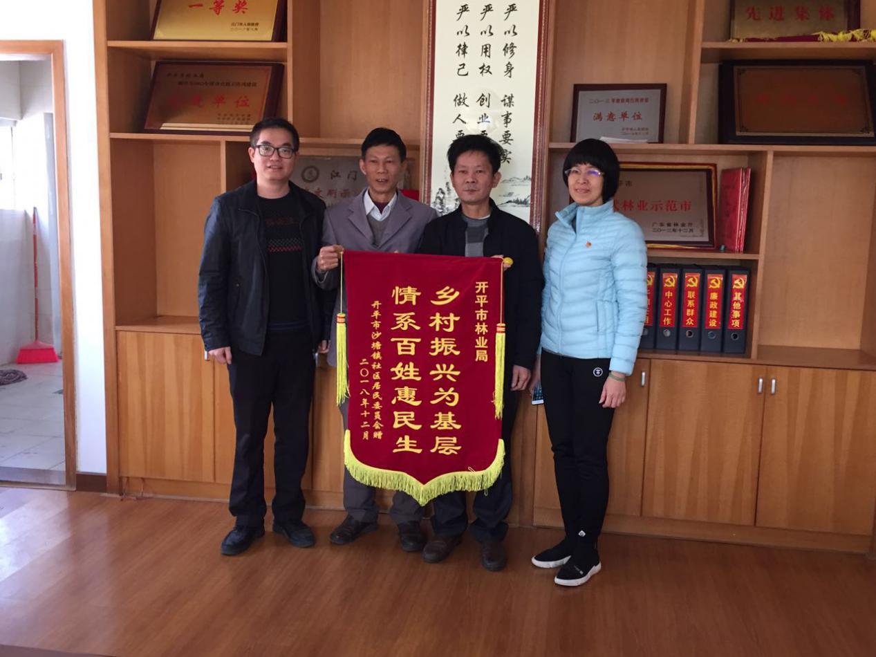 鄉(xiāng)村振興為基層、情系百姓惠民生 ——市林業(yè)局“送苗下鄉(xiāng)”助力美麗鄉(xiāng)村建設,沙塘鎮(zhèn)社區(qū)居委會贈送錦旗表謝意 2019年1月24日上午,沙塘鎮(zhèn)政府分管領導和農(nóng)辦及鎮(zhèn)社區(qū)居委會有關同志一行3人將一面印有“鄉(xiāng)村振興為基層、情系百姓惠民生”字樣的鮮紅錦旗送到我局,對我局開展“送苗下鄉(xiāng)”活動,大力支持該鎮(zhèn)建設生態(tài)居宜鄉(xiāng)村表示由衷的感謝。我局馮岸良副局長和李雪清紀檢組長接收了錦旗。 馮岸良副局長表示,收到基層贈送的錦旗,林業(yè)部門倍感到自身的責任,也將激發(fā)全體林業(yè)干部職工以高度的政治責任感和務實的工作作風,極探索綠色發(fā)展的長效機制,著力改善全市生態(tài)宜居環(huán)境,為扎實推進新一輪綠化開平作出更大貢獻。同時希望村民們加強苗木日常管護,確保植樹成效,林業(yè)部門將提供技術(shù)指導,共同鞏固綠化美化建設成果。