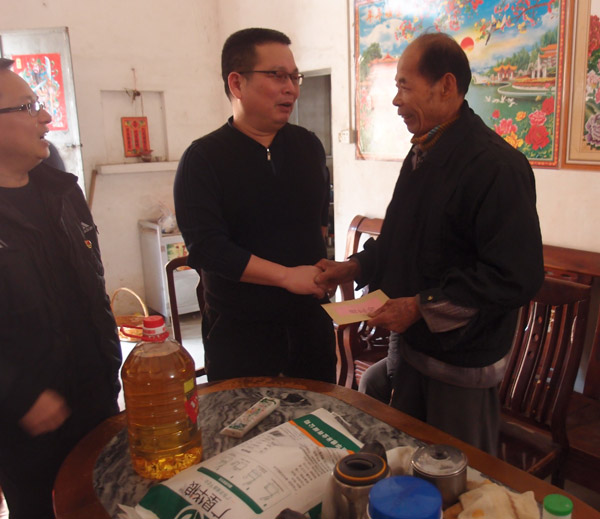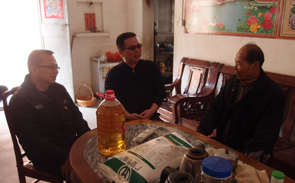 2月1日下午,我局張偉杰局長來到金雞鎮(zhèn)向北村委會的李恒益、劉華銳和黎錦榮等3戶貧困戶家中進行慰問,向他們送上食油、大米和慰問金。 張偉杰同志詢問了解他們的家庭生活和身體情況,認真傾聽他們的訴求和愿望,向他們送上新年的祝福,叮囑他們保重身體,注意防寒保暖,并表示將同所屬鎮(zhèn)和相關(guān)部門單位反映情況,加強聯(lián)系溝通,幫助解決他們的訴求;并勉勵他們積極樂觀面對生活,有困難主動跟相關(guān)部門溝通,黨和政府會盡力為他們送溫暖、辦實事、解憂難。