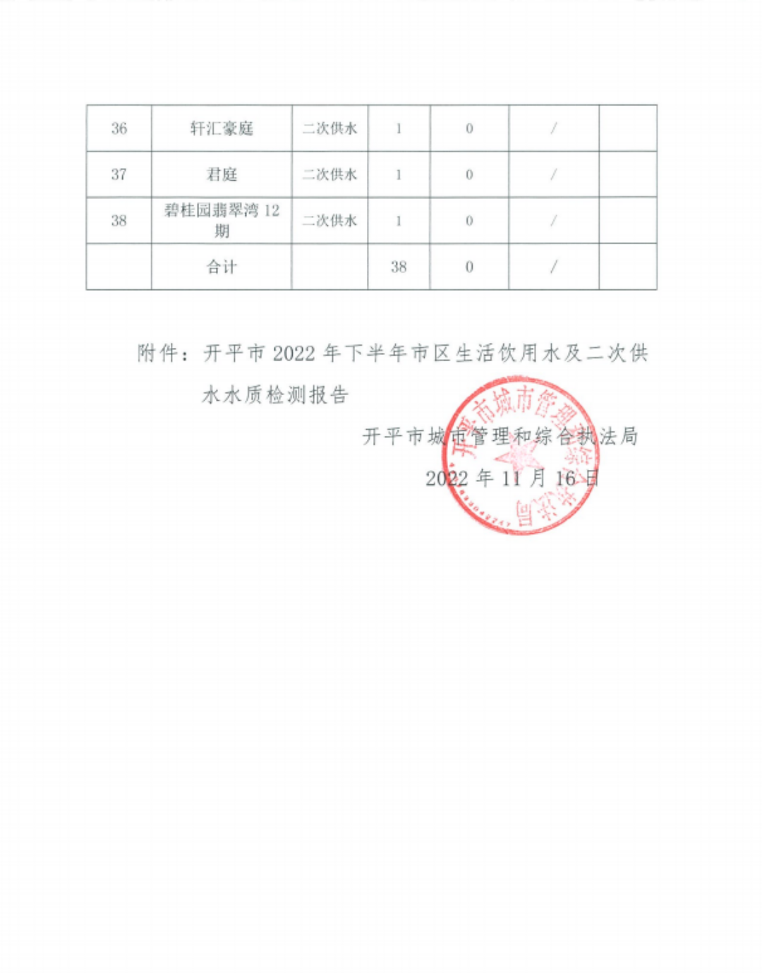 開平市2022年下半年市區(qū)生活飲用水及二次供水水質(zhì)檢測信息公示