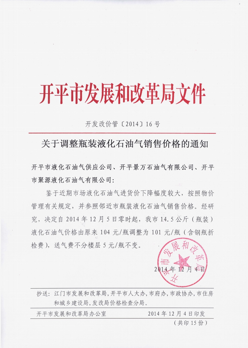 開發(fā)改價(jià)管[2014]16號(hào) 關(guān)于調(diào)整瓶裝液化石油氣銷售價(jià)格的通知