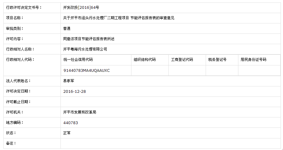 關于開平市逕頭污水處理廠二期工程項目 節(jié)能評估報告表的審查意見