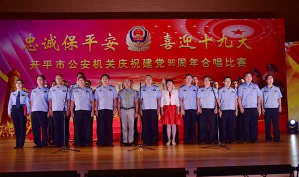7月6日晚上8時(shí),開(kāi)平市公安局在青少年宮一樓演藝廳舉行 “忠誠(chéng)保平安,喜迎十九大”——慶祝建黨96周年合唱比賽,熱情謳歌偉大的黨、偉大的祖國(guó)和偉大的新時(shí)代,以此激勵(lì)全體公安民警勿忘初心、繼續(xù)前進(jìn),堅(jiān)定維護(hù)社會(huì)穩(wěn)定的信心和決心,努力為黨的十九大勝利召開(kāi)創(chuàng)造安全穩(wěn)定的社會(huì)環(huán)境。開(kāi)平市副市長(zhǎng)、公安局局長(zhǎng)陳勇,開(kāi)平市市直機(jī)關(guān)工委書(shū)記林斌,開(kāi)平市委政法委常務(wù)副書(shū)記鄭國(guó)榮等領(lǐng)導(dǎo)出席活動(dòng)。陳勇同志為活動(dòng)致辭。