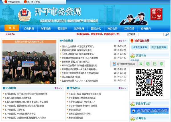 (五)強(qiáng)化創(chuàng)新,提升效能。年初,針對(duì)原有互聯(lián)網(wǎng)公安網(wǎng)站公開信息量少、范圍窄、民警互動(dòng)性不強(qiáng)、為民服務(wù)功能弱的問題,我局抓住公安部開展“四項(xiàng)建設(shè)”社會(huì)管理創(chuàng)新的有利契機(jī),對(duì)網(wǎng)站進(jìn)行改版升級(jí),完善網(wǎng)站各項(xiàng)功能,擴(kuò)大公開范圍,提升服務(wù)效能。完善后的開平市公安局互聯(lián)網(wǎng)站內(nèi)容更加完備,分為公安快訊、政務(wù)公開、辦事指南、安全防范、法律法規(guī)、機(jī)構(gòu)概況、微薄、微信、在線訪談、網(wǎng)上警務(wù)室、警情通報(bào)、網(wǎng)上咨詢、便民服務(wù)、舉報(bào)投訴、交通違章查詢、二代身份證辦理進(jìn)度查詢等板塊,包括本市治安、交通、消防等方面的總體情況、典型案例、防范提示及各類辦事表格下載等。