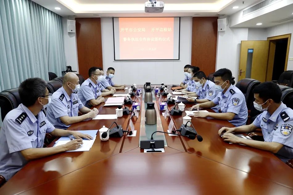 為推進打擊各類妨害國(邊)境管理犯罪活動縱深開展,5月11日下午,開平市公安局與開平邊檢站舉行警務執(zhí)法合作協(xié)議簽約儀式。開平市副市長、公安局黨委書記、局長陳永強,黨委委員、副局長黃少龍,開平邊檢站黨委書記、站長穆立軍,黨委副書記、政委吳秀群及班子成員參加儀式。