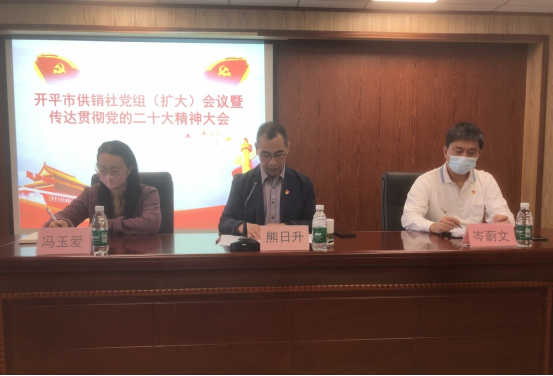 11月2日下午,市供銷社召開黨組(擴(kuò)大)會(huì)議傳達(dá)貫徹黨的二十大精神,推動(dòng)市供銷社學(xué)習(xí)貫徹工作走深走實(shí)。開平市供銷社黨組書記、主任熊日升主持并講話,市社機(jī)關(guān)全體干部職工、下屬單位相關(guān)負(fù)責(zé)人參加會(huì)議。 會(huì)議指出,黨的二十大是在全黨全國各族人民邁上全面建設(shè)社會(huì)主義現(xiàn)代化國家新征程、向第二個(gè)百年奮斗目標(biāo)進(jìn)軍的關(guān)鍵時(shí)刻召開的一次十分重要的大會(huì)。習(xí)近平總書記代表第十九屆中央委員會(huì)向大會(huì)作了題為《高舉中國特色社會(huì)主義偉大旗幟 為全面建設(shè)社會(huì)主義現(xiàn)代化國家而團(tuán)結(jié)奮斗》的報(bào)告。大會(huì)選舉產(chǎn)生了新一屆中央委員會(huì)和中央紀(jì)律檢查委員會(huì),通過了十九屆中央委員會(huì)報(bào)告決議、十九屆中央紀(jì)律檢查委員會(huì)工作報(bào)告決議、《中國共產(chǎn)黨章程(修正案)》決議,對(duì)凝聚和激勵(lì)全黨全軍全國各族人民高舉中國特色社會(huì)主義偉大旗幟、為全面建設(shè)社會(huì)主義現(xiàn)代化國家團(tuán)結(jié)奮斗具有十分重大的政治意義、理論意義、戰(zhàn)略意義、實(shí)踐意義,取得了豐碩的政治成果、理論成果、戰(zhàn)略成果、制度成果、實(shí)踐成果。 會(huì)議強(qiáng)調(diào),學(xué)習(xí)好、宣傳好、貫徹好黨的二十大精神,是當(dāng)前和今后一個(gè)時(shí)期的重要政治任務(wù)。全社系統(tǒng)黨員干部職工要深刻領(lǐng)會(huì)黨的二十大精神的豐富內(nèi)涵和精神實(shí)質(zhì),切實(shí)用以統(tǒng)一思想、統(tǒng)一意志、統(tǒng)一行動(dòng)。聚焦“五個(gè)牢牢把握”的要求,深刻領(lǐng)會(huì)黨的二十大的主題,深刻領(lǐng)會(huì)過去5年工作和新時(shí)代10年偉大變革的重大意義,深刻領(lǐng)會(huì)習(xí)近平新時(shí)代中國特色社會(huì)主義思想的世界觀和方法論,深刻領(lǐng)會(huì)新時(shí)代新征程黨的使命任務(wù),深刻領(lǐng)會(huì)全面建設(shè)社會(huì)主義現(xiàn)代化國家的戰(zhàn)略部署,深刻領(lǐng)會(huì)以偉大自我革命引領(lǐng)偉大社會(huì)革命的重大要求,深刻領(lǐng)會(huì)團(tuán)結(jié)奮斗的時(shí)代要求,把報(bào)告的部署要求轉(zhuǎn)化為開平供銷實(shí)現(xiàn)高質(zhì)量發(fā)展的工作思路和行動(dòng)抓手,為我市經(jīng)濟(jì)的高質(zhì)量發(fā)展作出更大貢獻(xiàn)。 會(huì)議要求,全系統(tǒng)要緊密結(jié)合供銷工作實(shí)際,不折不扣抓好黨的二十大精神的貫徹落實(shí)。一是在學(xué)習(xí)上要“掀熱潮”。全社黨員干部充分認(rèn)識(shí)學(xué)習(xí)宣傳貫徹黨的二十大精神的重大意義,通過黨組理論中心組學(xué)習(xí)會(huì)、“三會(huì)一課”、座談研討、輔導(dǎo)講座等多種形式,認(rèn)認(rèn)真真、原原本本、逐字逐句學(xué)習(xí)黨的二十大報(bào)告和黨章,掀起學(xué)習(xí)宣傳貫徹?zé)岢保_保黨員全覆蓋。二是在宣傳上要“全方位”。要通過市供銷聯(lián)社網(wǎng)站等開展連續(xù)宣傳解讀,組織機(jī)關(guān)黨員干部通過學(xué)習(xí)強(qiáng)國APP自學(xué)并撰寫學(xué)習(xí)心得體會(huì),要組織黨員干部進(jìn)企業(yè)、進(jìn)社區(qū)開展宣傳宣講,使黨的二十大精神家喻戶曉。三是在落實(shí)上要“見真章”。要堅(jiān)持以黨的二十大精神為引領(lǐng),緊密結(jié)合省委、江門市委和開平市委的最新要求和部署,認(rèn)真落實(shí)“疫情要防住、經(jīng)濟(jì)要穩(wěn)住、發(fā)展要安全”的重要要求,高效統(tǒng)籌疫情防控和供銷發(fā)展,以實(shí)際行動(dòng)推動(dòng)黨的二十大精神在全系統(tǒng)的貫徹落實(shí)。
