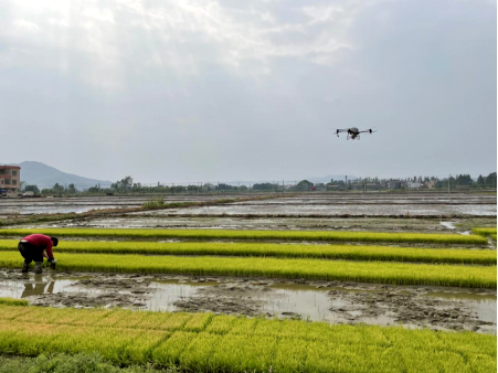 “1畝,3畝……100畝!”近日,在廣東省開平市月山鎮(zhèn)高陽村委大圓村,農(nóng)戶許振旋自從參與了開平市供銷社的農(nóng)業(yè)社會化服務(wù),短短半天時間,僅用一人一架植保無人“小飛機”,就完成了100畝田地的施肥作業(yè),為此,許振旋臉上掛滿了豐收的笑容。 近年來,開平市供銷社充分利用數(shù)字化信息技術(shù),以植保無人“小飛機”作為服務(wù)現(xiàn)代農(nóng)業(yè)生產(chǎn)的切入點,積極構(gòu)建供銷公共型農(nóng)業(yè)社會化服務(wù)體系,向數(shù)字賦能鄉(xiāng)村振興的“大時代”邁進,助力春耕工作開展。 “小飛機”描繪“智慧”春耕圖 人勤春來早,處處光景新。時值春耕,開平市供銷社打造“大平臺+基層供銷社+農(nóng)戶”服務(wù)模式,以農(nóng)服團隊為主力,聯(lián)合各基層供銷社在全市15個鄉(xiāng)鎮(zhèn)開展無人機統(tǒng)防統(tǒng)治、統(tǒng)配統(tǒng)施服務(wù),發(fā)揮省、市供銷合作社大平臺的資源優(yōu)勢,開展訂單式農(nóng)業(yè)生產(chǎn)托管服務(wù),使用植保無人“小飛機”及現(xiàn)代化農(nóng)機,在希望的田野上耕“云”種“數(shù)”,描繪出一幅“智慧”春耕圖。 在開平塘口鎮(zhèn)魁草村,農(nóng)戶劉林參加開平供銷農(nóng)服的化肥減量增效項目免費施肥服務(wù),通過無人機作業(yè)受惠施肥32斤/畝。開平供銷農(nóng)服無人機飛手開展無人機施肥作業(yè),施肥面積為165畝,直接減免農(nóng)戶的部分施肥成本,并且施肥過程采用植保無人機施肥技術(shù),讓農(nóng)戶真真切切地感受到科技的便利性,真正做到惠農(nóng)助農(nóng)。 “小飛機”推進智慧農(nóng)業(yè)發(fā)展 先進的無人機施肥技術(shù)具有全面、高效、精準的特點,可大大縮短施肥時間,避免重噴漏噴、無效噴撒,既節(jié)省肥料、保護環(huán)境,又能提高水稻產(chǎn)量。無人機飛手需要先打點規(guī)劃田塊大小,依據(jù)作業(yè)行距,飛行速度等參數(shù)由算法生成作業(yè)航線。隨后按照預(yù)定的航線進行無人機作業(yè),既確保了糧食安全,又保障了糧食的高效產(chǎn)出,實現(xiàn)助農(nóng)增收。此外,無人機使用了GPS定位系統(tǒng),也能自動記錄作業(yè)的相關(guān)數(shù)據(jù),對現(xiàn)代農(nóng)業(yè)生產(chǎn)管理發(fā)揮了重要的作用,是數(shù)字化賦能現(xiàn)代農(nóng)業(yè)的關(guān)鍵一環(huán)。 開平水稻種植戶許振旋說:“以前我用人力施肥一天最多15畝,而且還要分好幾次,人工也貴。現(xiàn)在使用無人機施肥,成本低效率高,100畝地基本半天可以完成,省事、省工、更省時。其次,病蟲害的變化多樣也令我很頭痛,幾時打藥,打什么藥,打一次蟲都要好幾天,而且人工費也特別高?,F(xiàn)在參加開平市供銷社的統(tǒng)防統(tǒng)治服務(wù)后,農(nóng)藥不用自己買,病蟲害問題由他們?nèi)谈M,用無人機施藥,效率大大提高。” 現(xiàn)代農(nóng)業(yè)技術(shù)助力春耕促豐產(chǎn) 開平市供銷社通過農(nóng)機信息平臺調(diào)配無人飛機200臺、插秧施肥一體機15臺,可完成日均40000畝次的飛防作業(yè),2023年早造儲備控釋肥365噸,為耕戶做應(yīng)急需要儲備;積極對接農(nóng)戶需求,著力提供育秧、耙田整地、滅螺除草、插秧、統(tǒng)防統(tǒng)治、統(tǒng)配統(tǒng)施等全生產(chǎn)鏈條的農(nóng)業(yè)生產(chǎn)托管服務(wù),確保服務(wù)不脫節(jié),助力春耕促豐產(chǎn)。 為確保春耕服務(wù)工作順利開展,開平市供銷社還召開早造農(nóng)業(yè)生產(chǎn)社會化服務(wù)啟動會議,開平供銷農(nóng)服與各鎮(zhèn)級供銷農(nóng)業(yè)社會化服務(wù)站負責人簽訂《2023年早造統(tǒng)防統(tǒng)治業(yè)務(wù)合作協(xié)議》。同時,發(fā)揮基層農(nóng)技黨員服務(wù)隊的優(yōu)勢,深入田間地頭大力開展農(nóng)技宣傳推廣。截至目前,開平市供銷社在全市已簽約統(tǒng)防統(tǒng)治和農(nóng)業(yè)社會化服務(wù)面積4萬畝,已開展無人機施肥面積達2萬畝,服務(wù)農(nóng)戶180戶。 我國智慧農(nóng)業(yè)現(xiàn)正掀起“小飛機”春耕熱,“慧種地”已悄然敲響鄉(xiāng)村振興,山鄉(xiāng)巨變!“小飛機”大時代已來臨,各位“新農(nóng)人”,您播種了嗎?