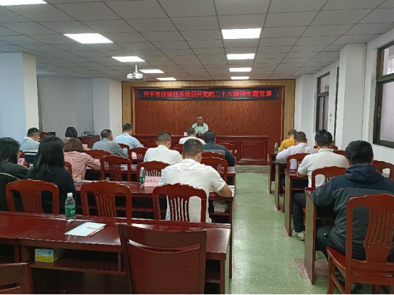 11月28日,開平市供銷社黨組書記熊日升以“深入學(xué)習(xí)貫徹黨的二十大精神 推動(dòng)三農(nóng)工作高質(zhì)量發(fā)展”為主題為全體黨員干部、下屬單位負(fù)責(zé)人上了一堂專題黨課。 熊日升從黨的二十大報(bào)告中有關(guān)“三農(nóng)”工作內(nèi)容出發(fā),引導(dǎo)全體參會(huì)人員要結(jié)合報(bào)告內(nèi)容去搶抓發(fā)展面臨的新機(jī)遇,了解供銷社歷史,把握新時(shí)代下的供銷社“三農(nóng)”工作的重點(diǎn),切實(shí)增強(qiáng)“三農(nóng)”工作的責(zé)任感和使命感,奮力推動(dòng)供銷工作高質(zhì)量發(fā)展。 熊日升指出,報(bào)告清晰規(guī)劃了中國特色社會(huì)主義下農(nóng)業(yè)、農(nóng)村和農(nóng)民的發(fā)展道路,深刻闡述了“三農(nóng)”在新時(shí)代新征程中的地位作用,明確了“三農(nóng)”工作的歷史方向,為做好“三農(nóng)”工作指明了前進(jìn)方向、確立了行動(dòng)指南。 熊日升強(qiáng)調(diào),要堅(jiān)持以習(xí)近平新時(shí)代中國特色社會(huì)主義思想為指導(dǎo),把學(xué)習(xí)貫徹習(xí)近平總書記視察廣東重要講話、重要指示精神,同省委“1310”具體部署和江門市委、開平市委工作安排貫通起來,同開展主題教育結(jié)合起來,不斷提高黨建工作質(zhì)量,在全面學(xué)習(xí)、全面把握、全面落實(shí)上下功夫,全面深化供銷合作社綜合改革,牢記供銷社為農(nóng)服務(wù)根本宗旨,大力發(fā)展綜合性合作經(jīng)濟(jì)組織,擔(dān)起“供”的責(zé)任,拓寬“銷”的渠道,做好“合”的文章,發(fā)揮“社”的作用,全面深化供銷合作社綜合改革,持續(xù)做好農(nóng)業(yè)社會(huì)化服務(wù),加快形成全產(chǎn)業(yè)鏈為農(nóng)服務(wù)體系。
